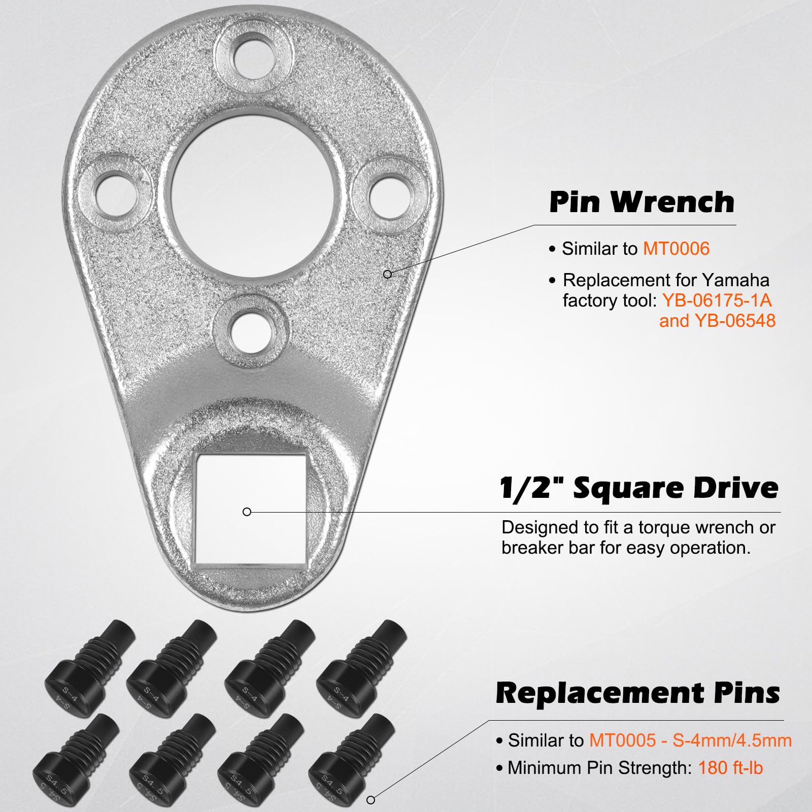 【MT0006 Pin Wrench】Fits for all SHOWA-manufactured Trim/Tilt Units: Trim Caps for Yamaha F115-F150; Trim Caps for Yamaha l4 2.8L (F175-F200); Trim Caps for Yamaha 2-Strokes (115-225hp); Trim Caps for Yamaha VMAX; Trim Caps for Suzuki; Trim Caps for Honda; Trim Caps for Johnson; Trim Caps for Evinrude.