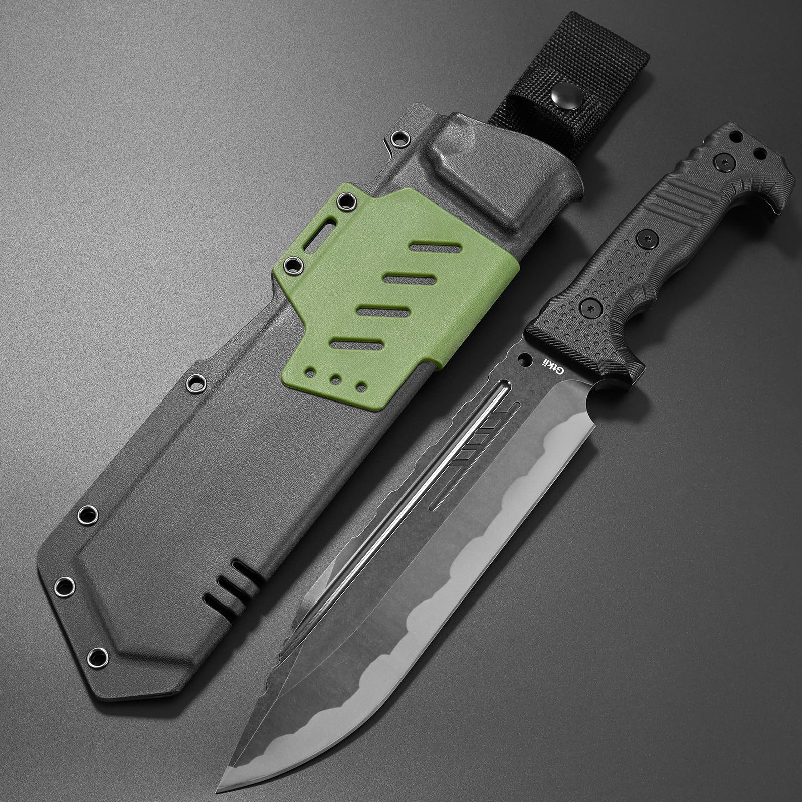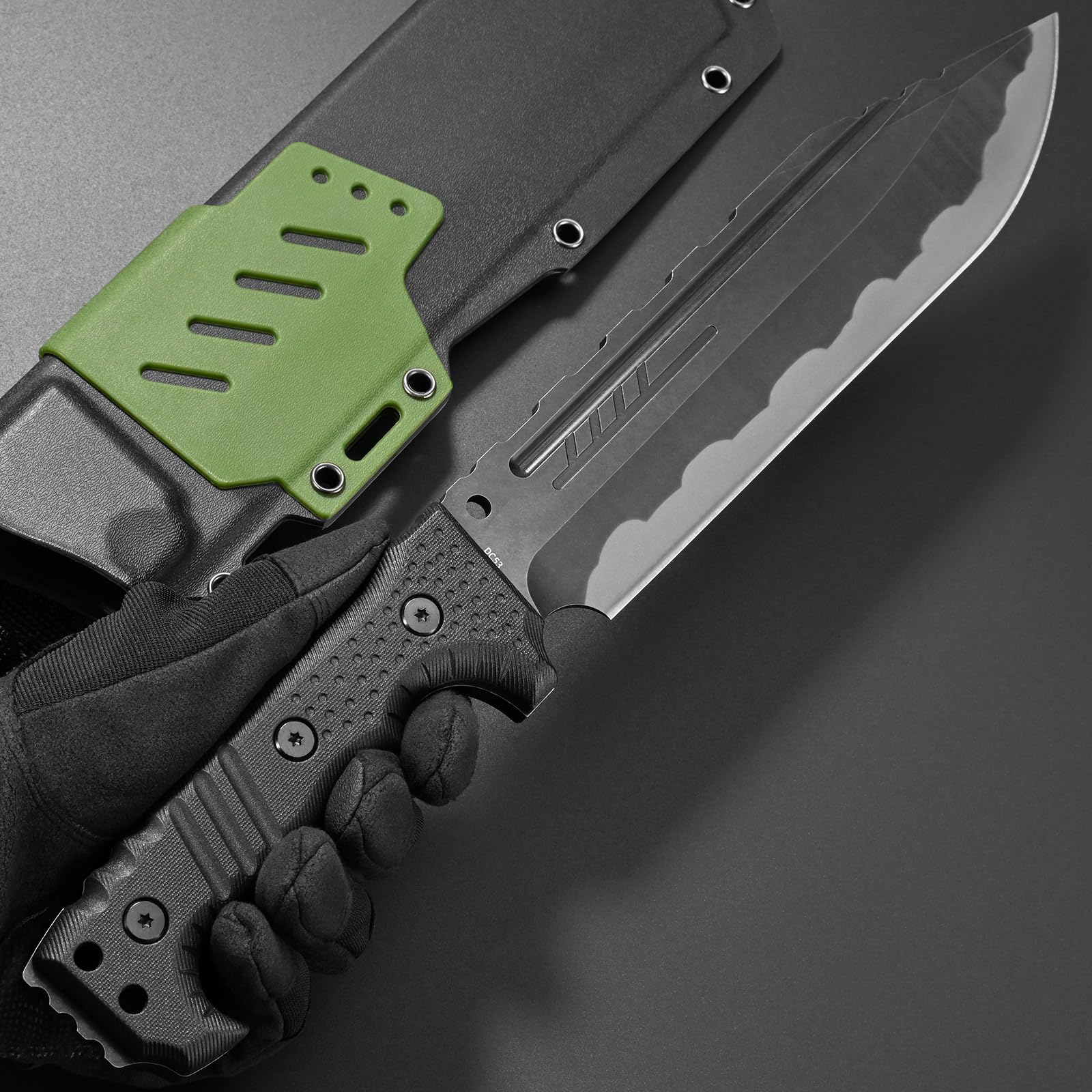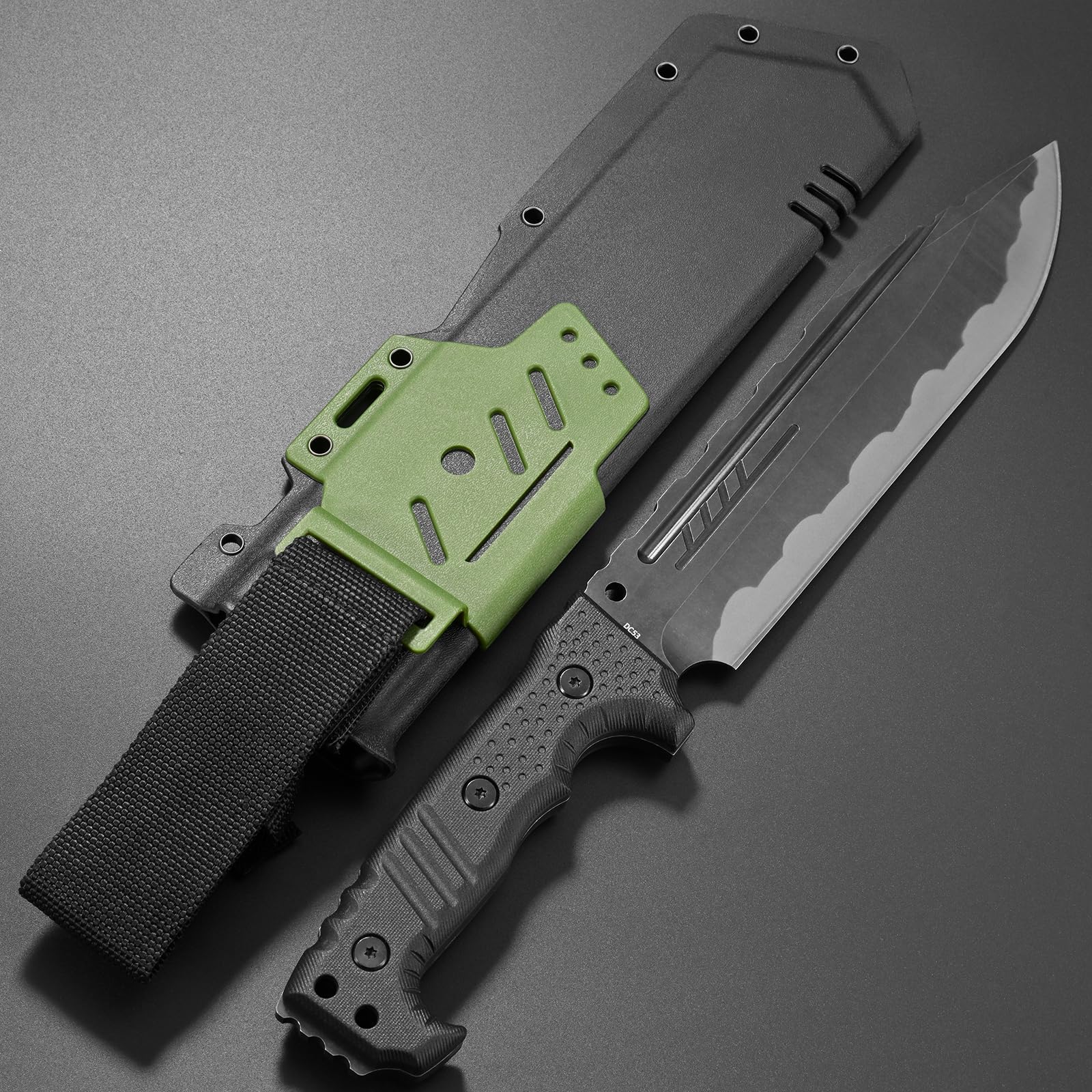 Large Size Full Tang HANDLE: The better ergonomic High Hardness Nylon Fiberglass handle provide a durable, security grip and increase concealability and multi-environment functionality. This new type material handle is better than G10 handle , it's temperature resistant, has good abrasion resistance, is anti-slip, moisture-proof, does not expand or contract due to normal temperature and moisture exposure, and is exceptionally rugged.