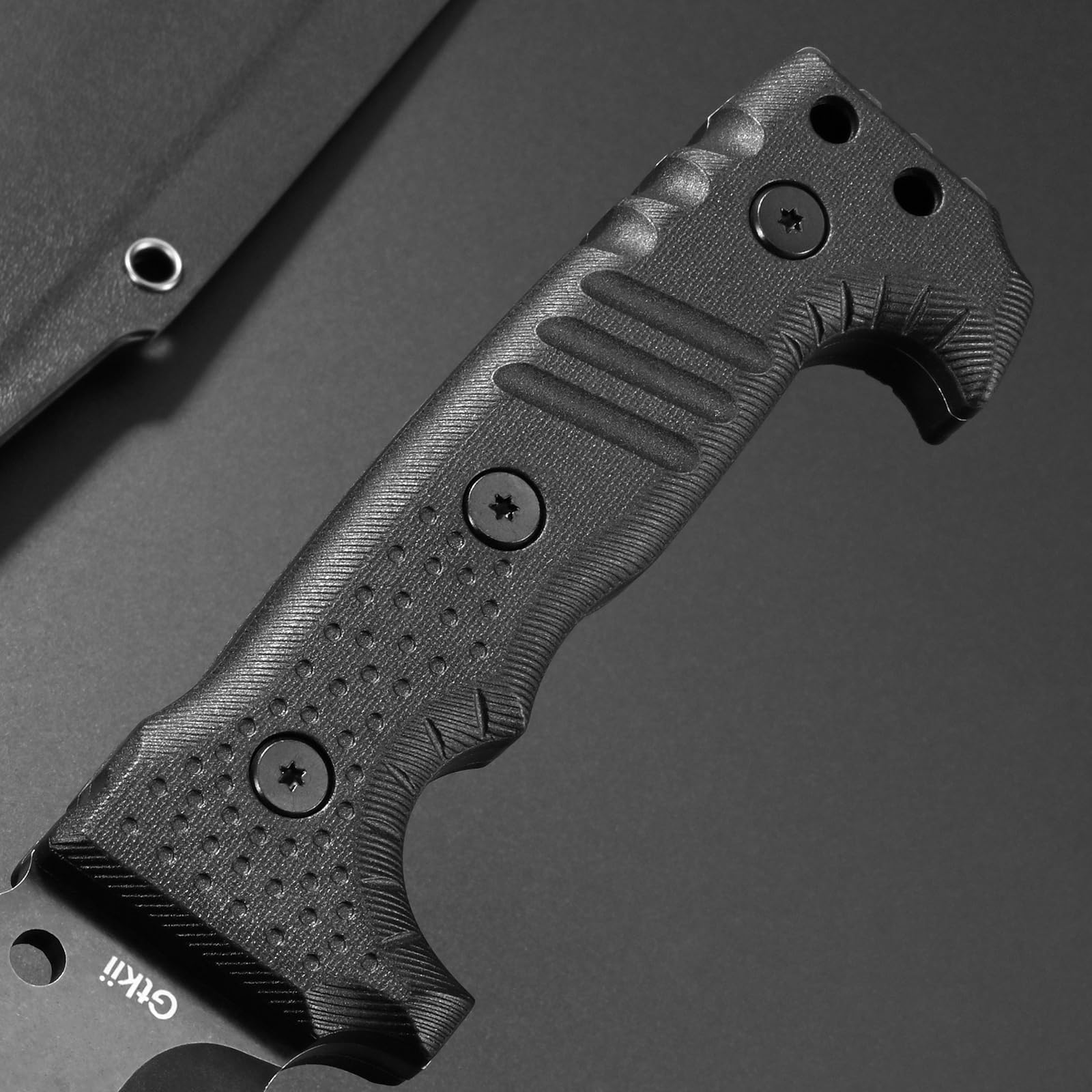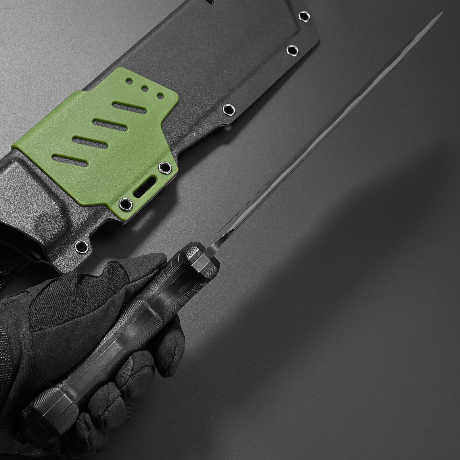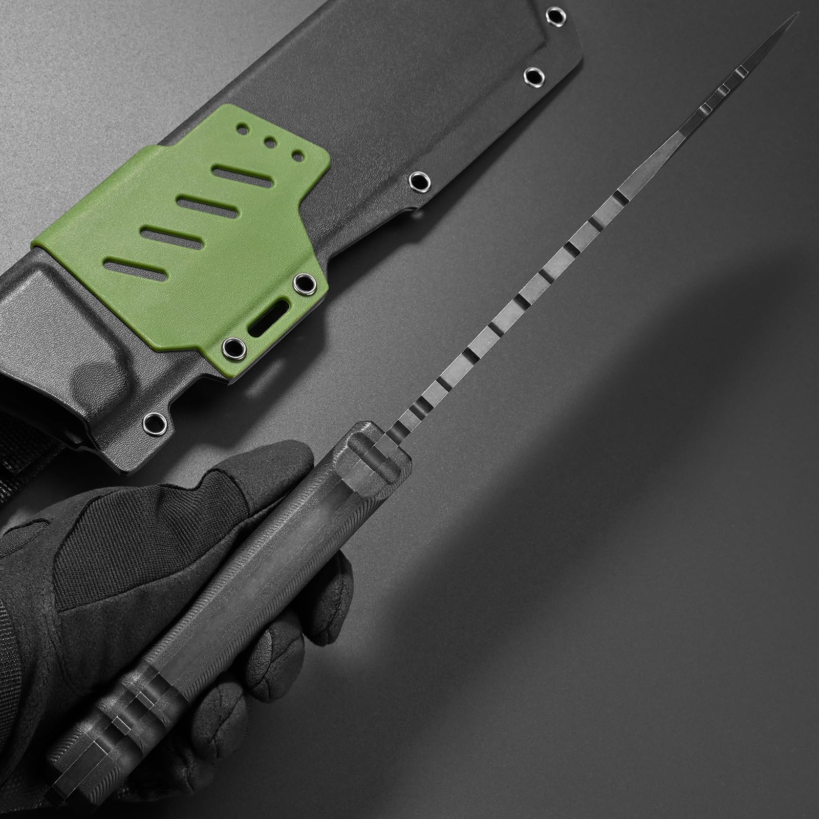 Large Size Full Tang HANDLE: The better ergonomic High Hardness Nylon Fiberglass handle provide a durable, security grip and increase concealability and multi-environment functionality. This new type material handle is better than G10 handle , it's temperature resistant, has good abrasion resistance, is anti-slip, moisture-proof, does not expand or contract due to normal temperature and moisture exposure, and is exceptionally rugged.