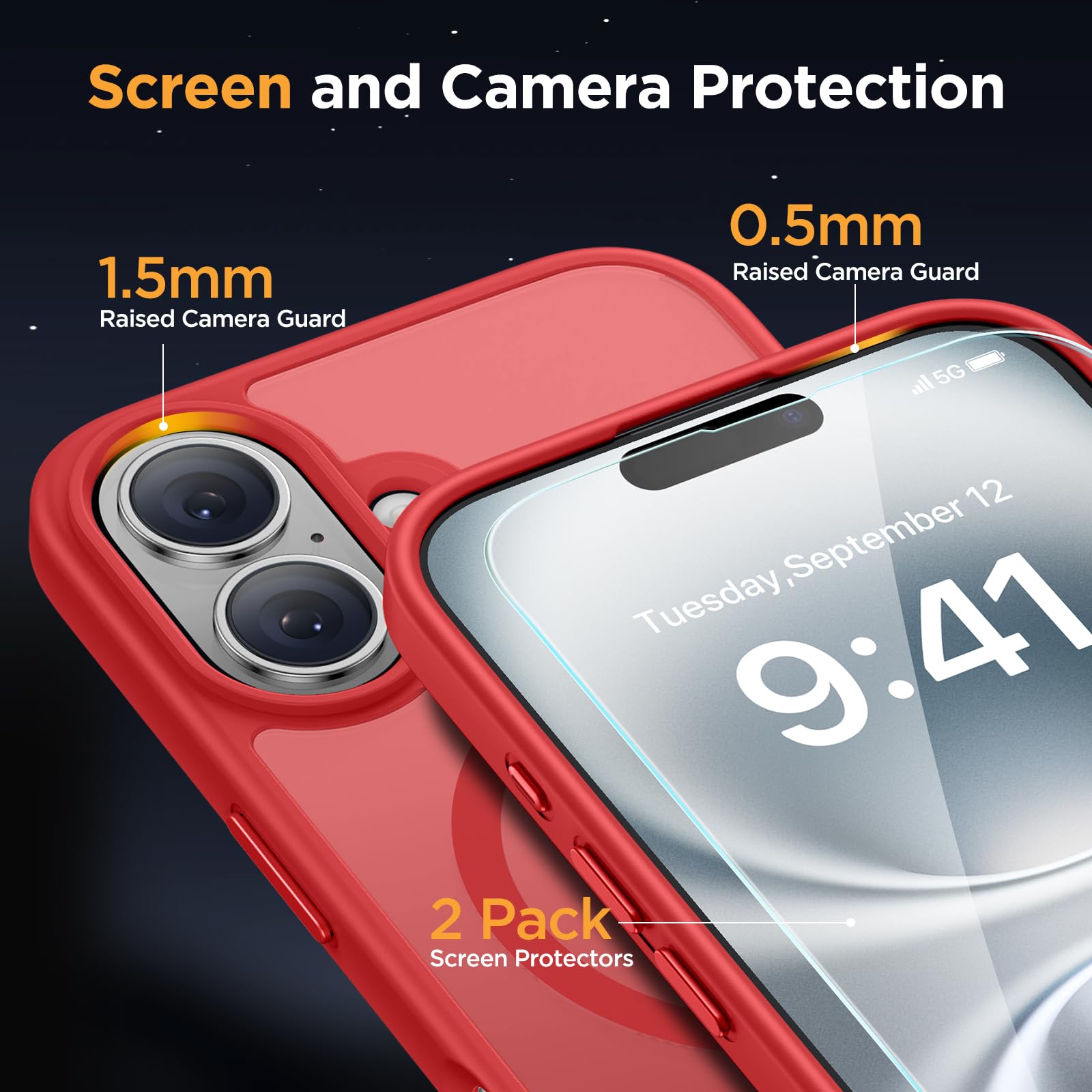 [Rugged Camera and Screen Protection]: This phone case for 16 comes with 2 high-quality tempered glass screen protectors included in the package. The camera frame is raised by 1.5mm to safeguard the camera lens, preventing dust accumulation and preserving the camera's original performance. Additionally, the screen protectors effectively shield the screen from scratches, ensuring comprehensive protection for your phone.