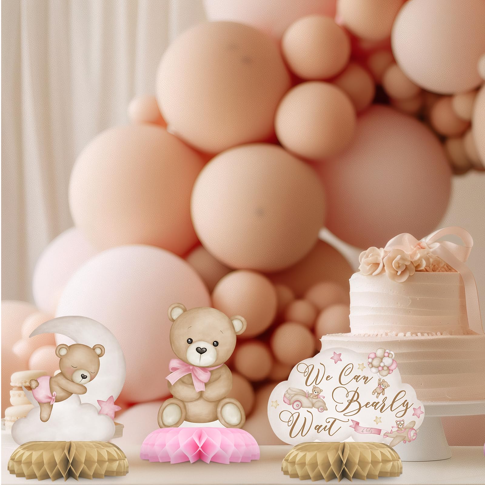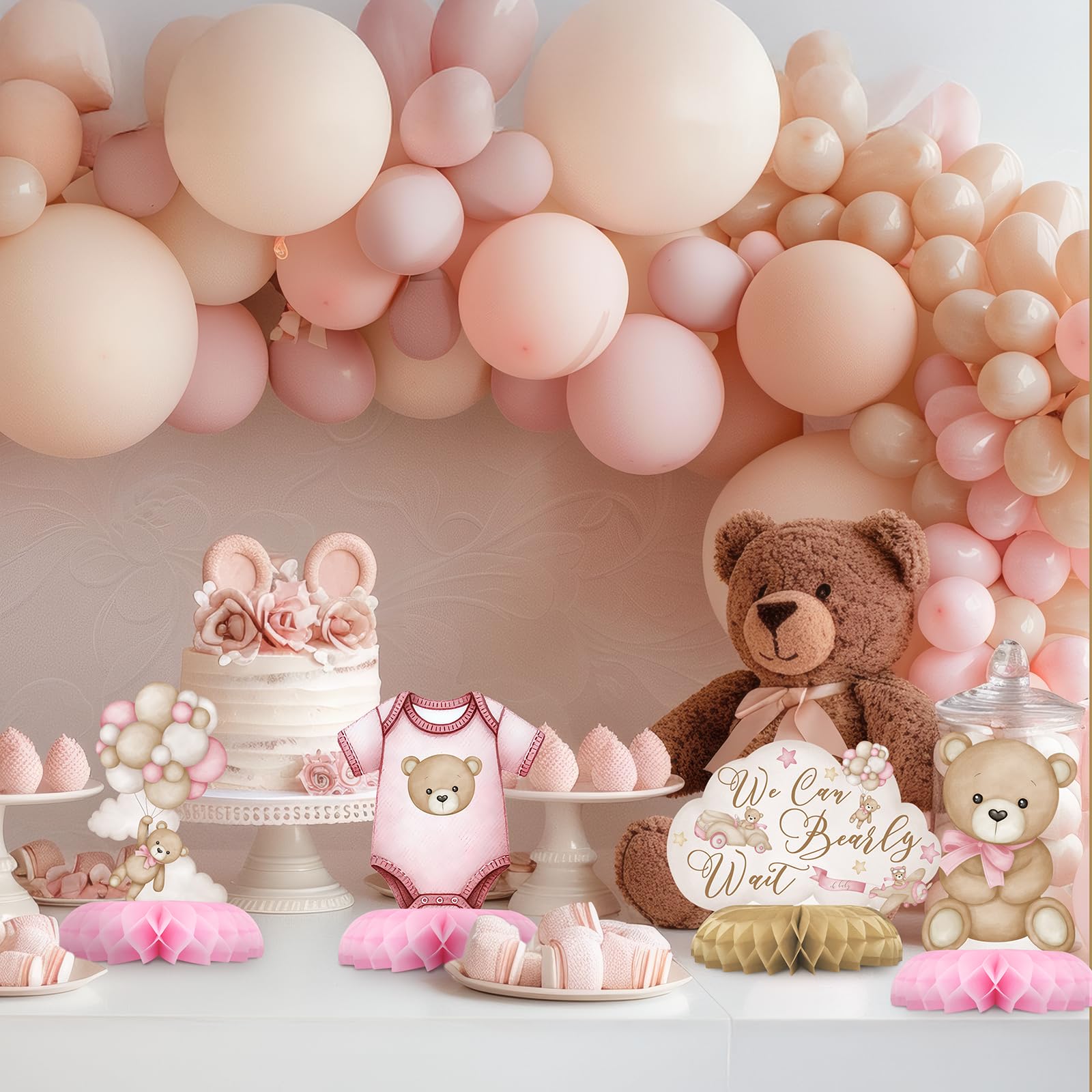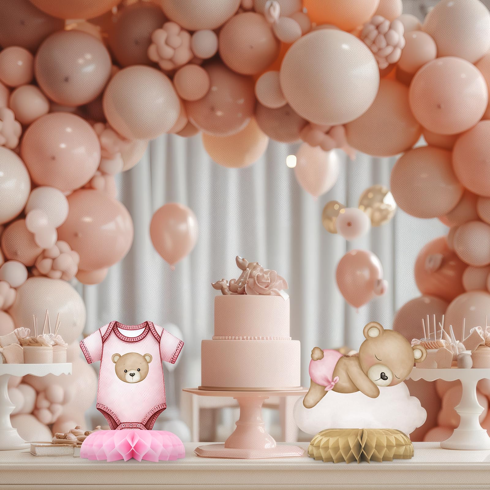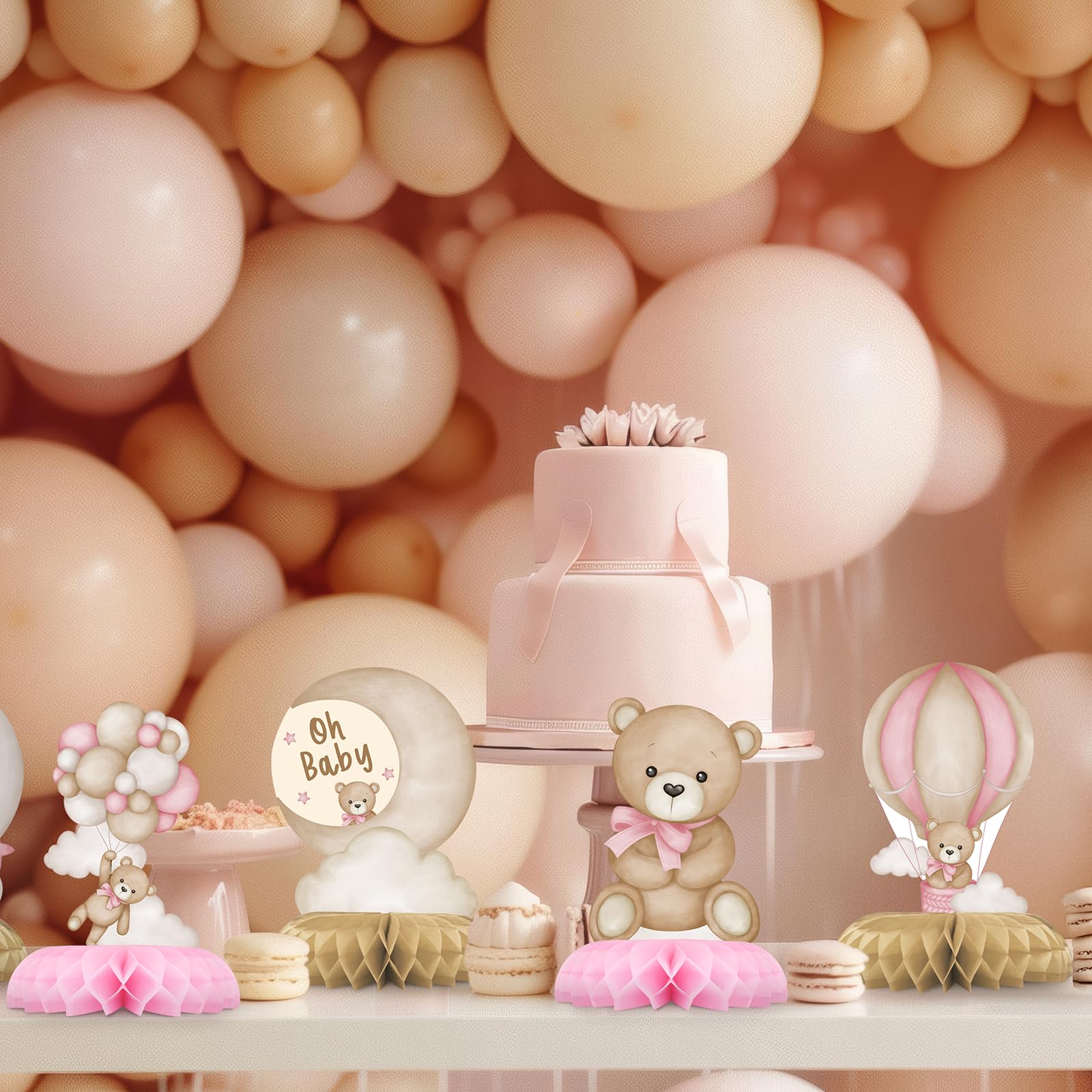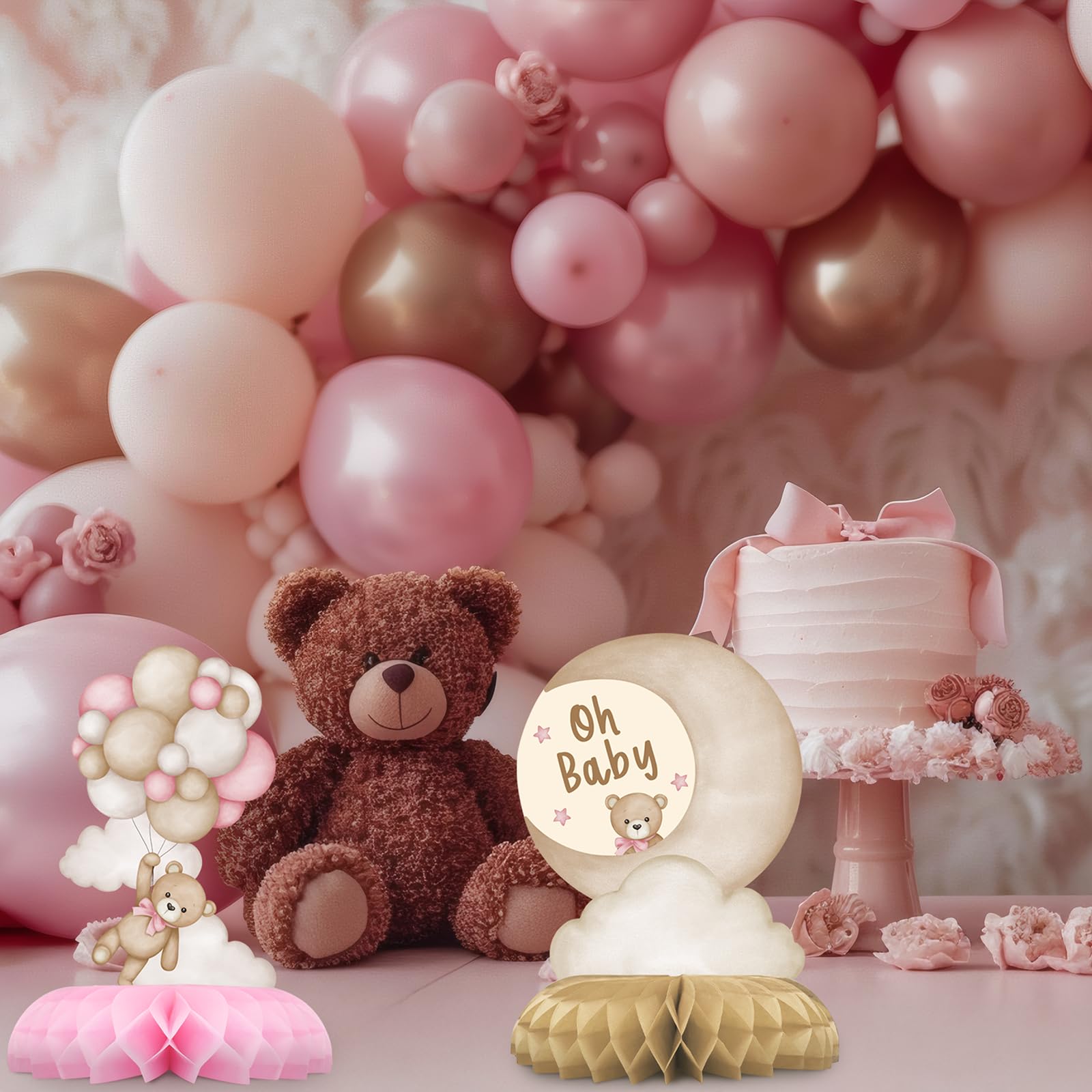 VERSATILE PINK TEDDY BEAR PARTY DECORATIONS: Perfect for baby girl showers, creative table settings, photo props, birthdays, children's parties, family gatherings, and teddy bear-themed events. These adorable pink balloon bear honeycomb centerpieces add a playful and charming touch to any occasion!