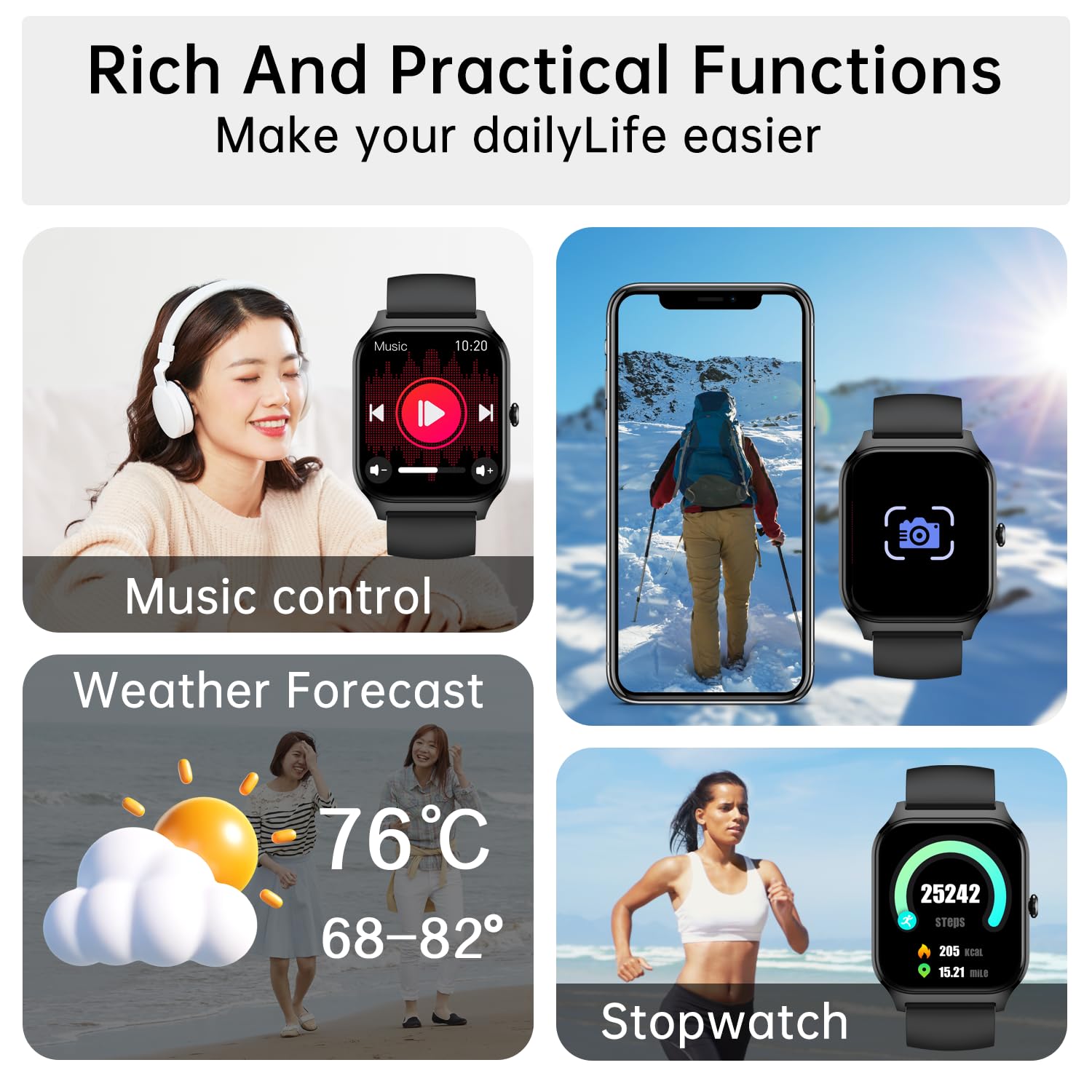 Smartwatch with heart rate monitor watch: Smart watches for women men use advanced optical sensors,allowing running watches to collect health data more accurately,which can monitor heart rate,blood oxygen (Sp02), helping you better understand your health and making a reasonable adjustment to your lifestyle.ios android smart watches for women men can monitor your sleep status (deep sleep, shallow sleep, awakening) and provide a comprehensive sleep quality analysis to help become healthier