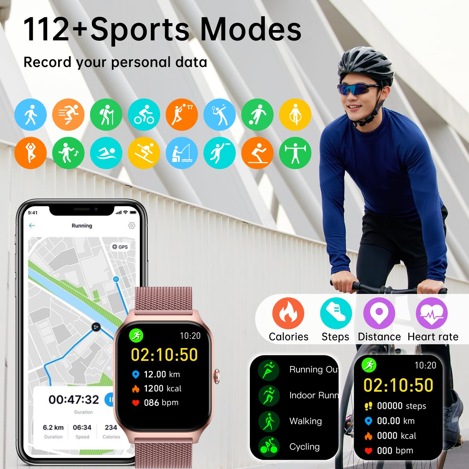 Fitness watches for women men with 112 Sport Mode - Sports watch accurate track step,distance,calorie.Digital watch men women support 112 sport mode:running,riding,badminton,hiking etc to give you more detailed insight into whole day activity.Step tracker watch for women men is IPX8 waterproof,you can wear it during outdoor activities, rainy day, washing hand.Note: This step counter watch can obtain GPS positioning through your mobile phone and clearly upload your movement path