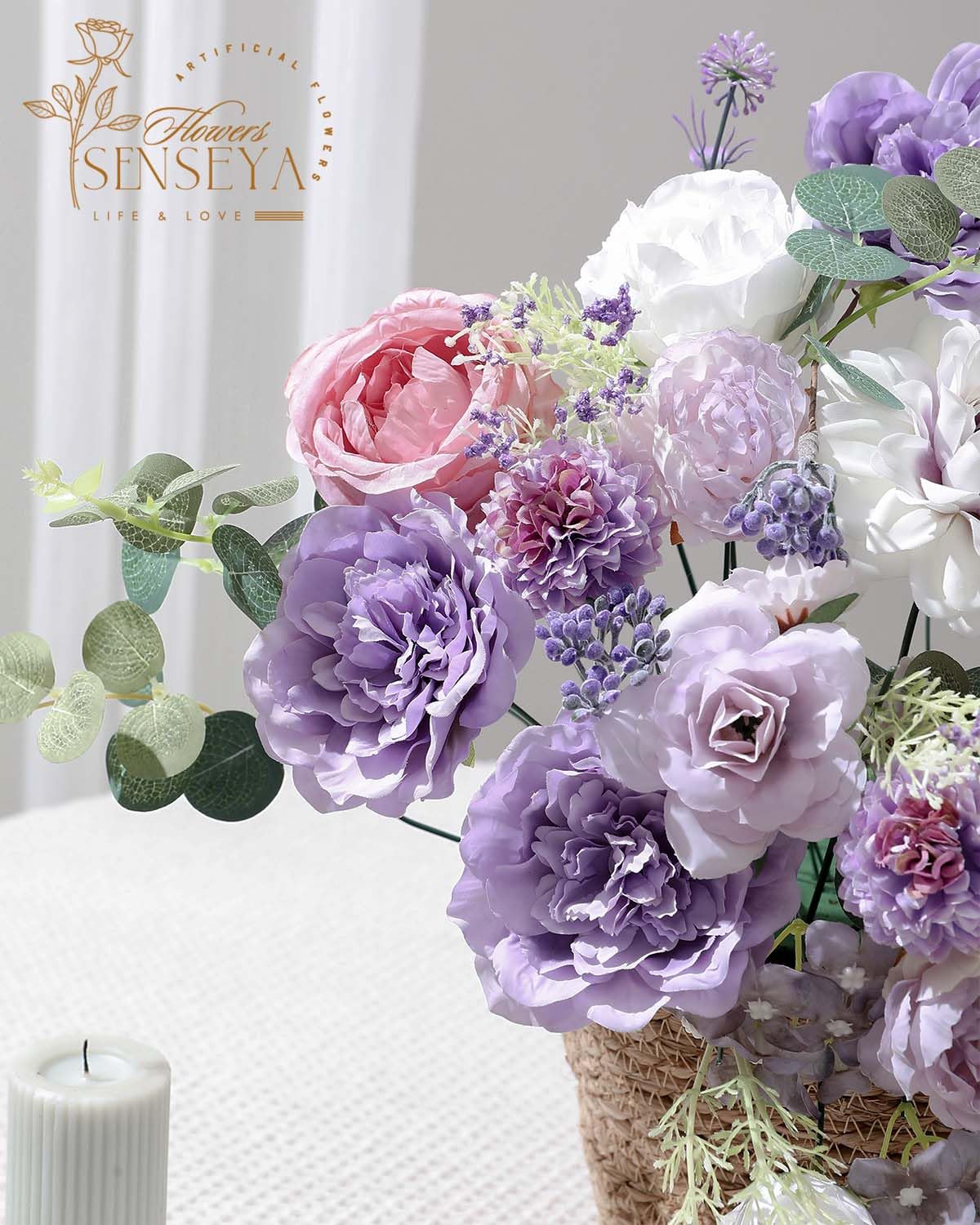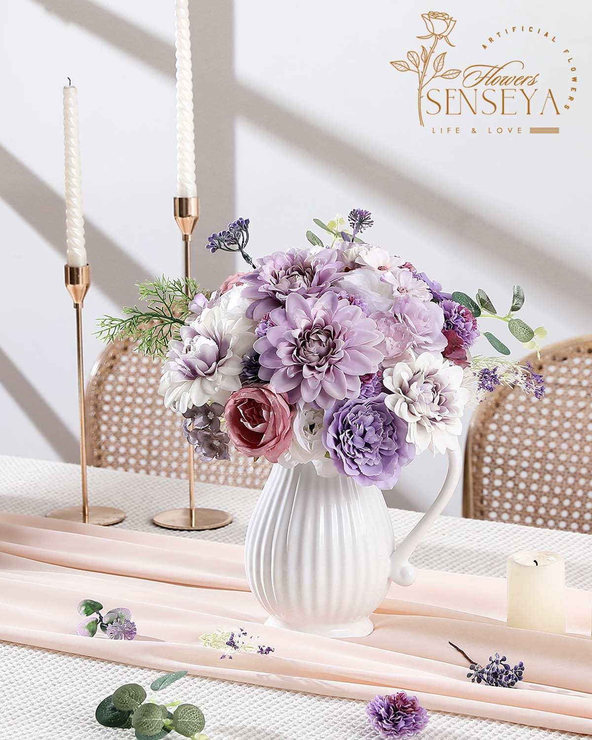 【🌸STUNNING BLEND & UNIQUE DESIGN】 The Senseya artificial purple flower set is meticulously designed by Mark de Ruijter, a top floral designer from the Netherlands. Mark holds an ADFA 1 certificate and is dual-certified by both VBW and EFDA. He has also designed floral arrangements for Dutch aristocratic weddings, showcasing his exceptional talent. Mark cleverly blends different types and colors of flowers through design, giving them vibrant hues and elegant textures.