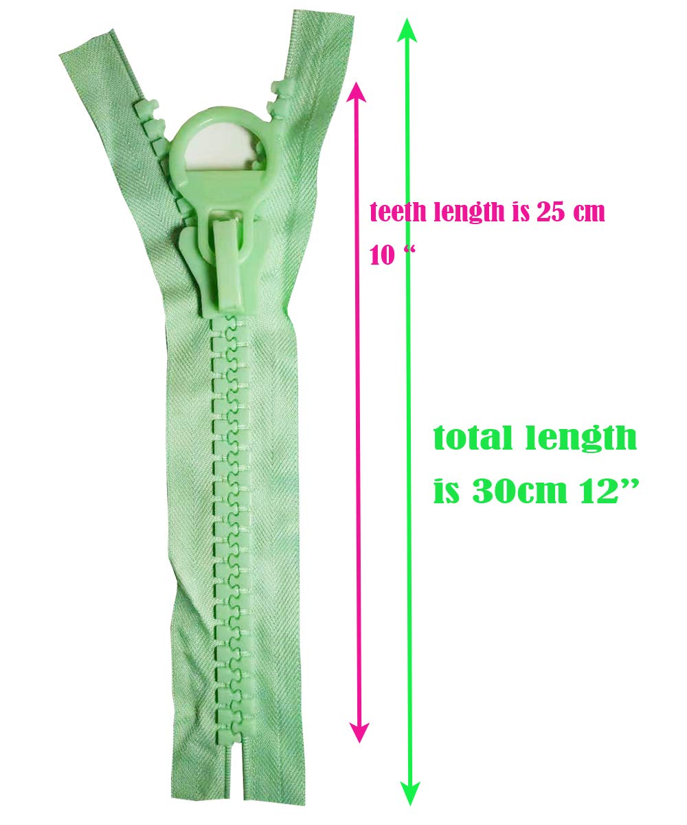 Color:#20 l-gree -2pcs 20 Super Separating Large Plastic Zipper Made from high quality plastic to ensure extra strength & reliability. Quantity : 2 pcs Color : light -green There may be small differences in color due to different displays. ★SPECIAL POINT-- This item is super large zipper, very large teeth and strong with big puller ,★★There are no zipper stops on then and no start catch on the zipper, please kindly check the pictures carefully ,. If you are not looking for such large zippers, please do not buy it.
