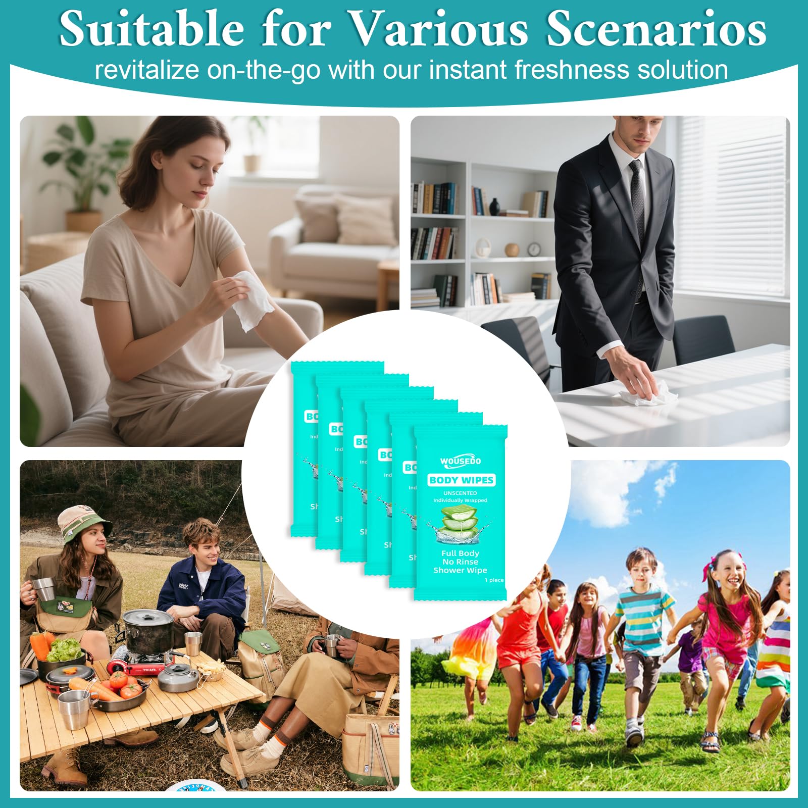 Universal Use Anywhere,Anytime:From gym sessions to family trips,camping, or quick baby care – conquer messes anytime!These ultra-gentle wipes work on all ages (baby to elderly),effectively cleansing skin without water.Keep fresh effortlessly wherever life takes you.