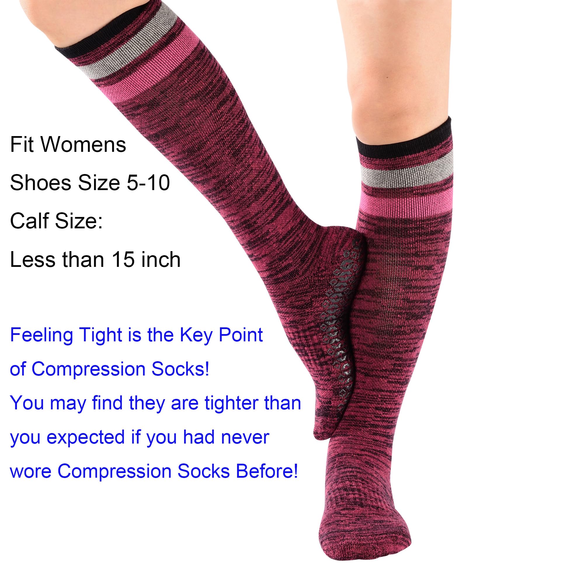 Size Range--The high quality elastic provides both compression fit and wide size range. They fit women's shoes size 5-10. Please be remined that Feeling tight is the key point of Compression socks. Please feel free to contact us for any problem you got with the socks!