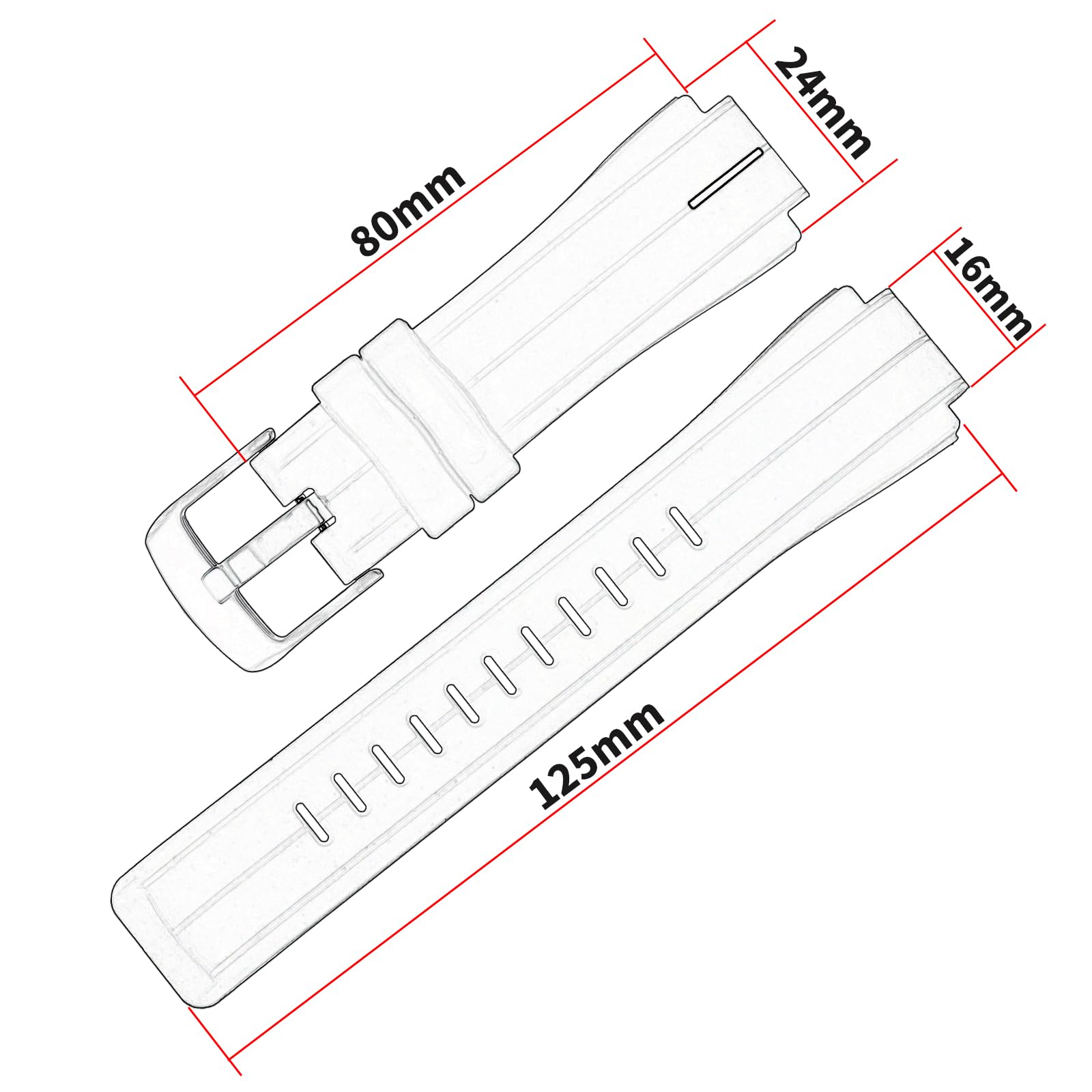 【Free Installation Tools】 1 x 24mm x16mm Rubber Watch Band+1x Tool+3x Spring Bar