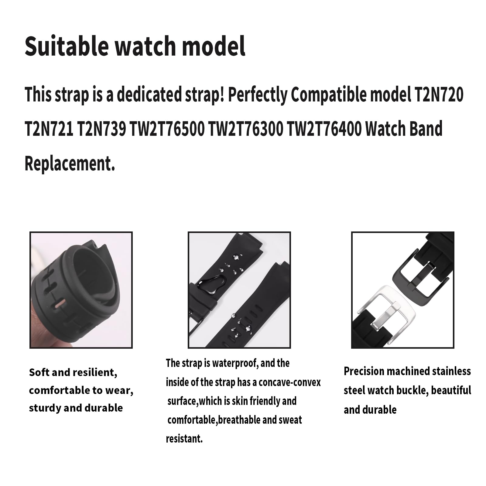 【Perfectly Compatible model】T2N720 T2N721 T2N739 TW2T76500 TW2T76300 TW2T76400 Watch Band Replacement