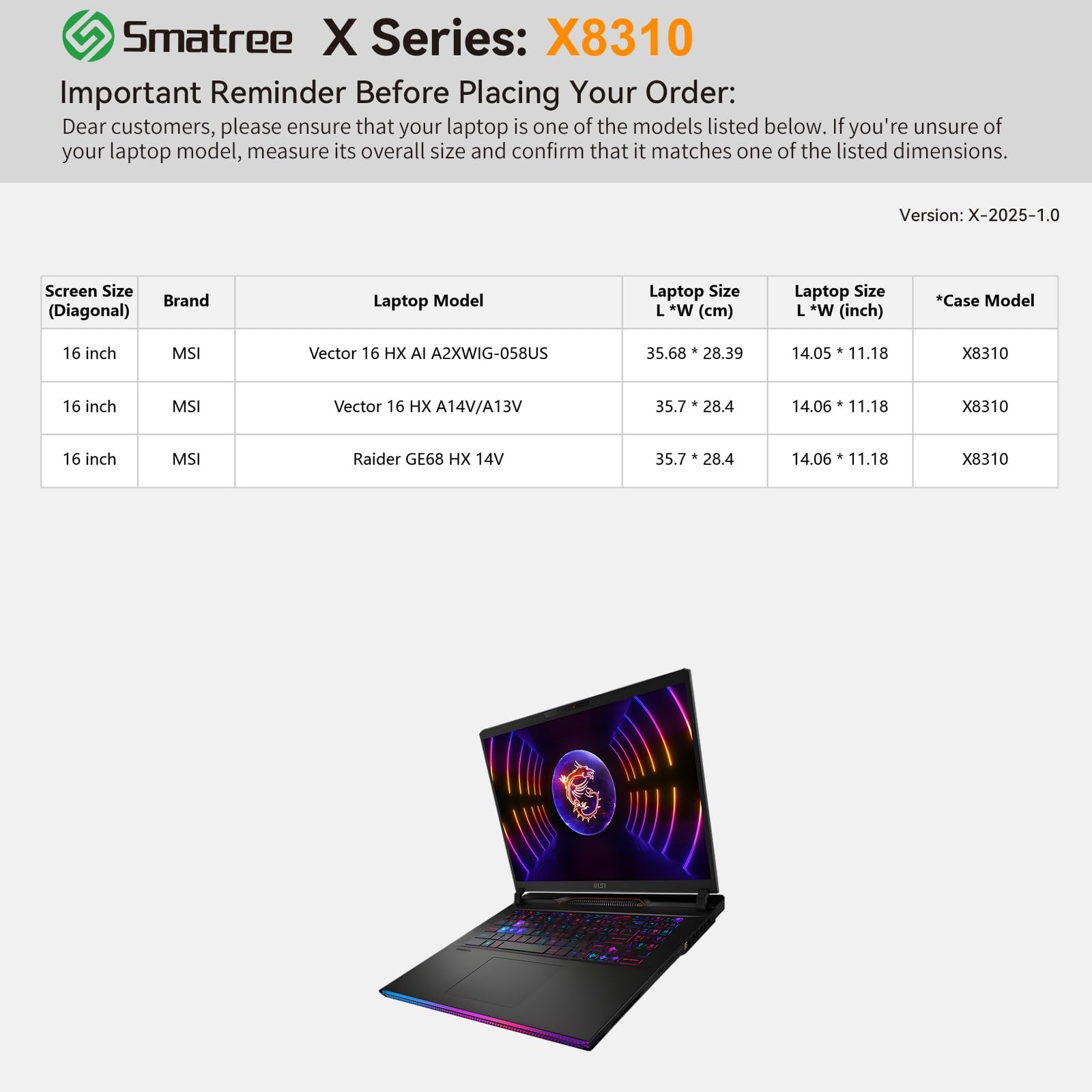 Compatibility: designed to perfectly fit for 16 inch MSI Raider GE68 HX 14V laptop; 16 inch MSI Vector 16 HX A14V/A13V laptop; 16 inch MSI Vector A16 HX