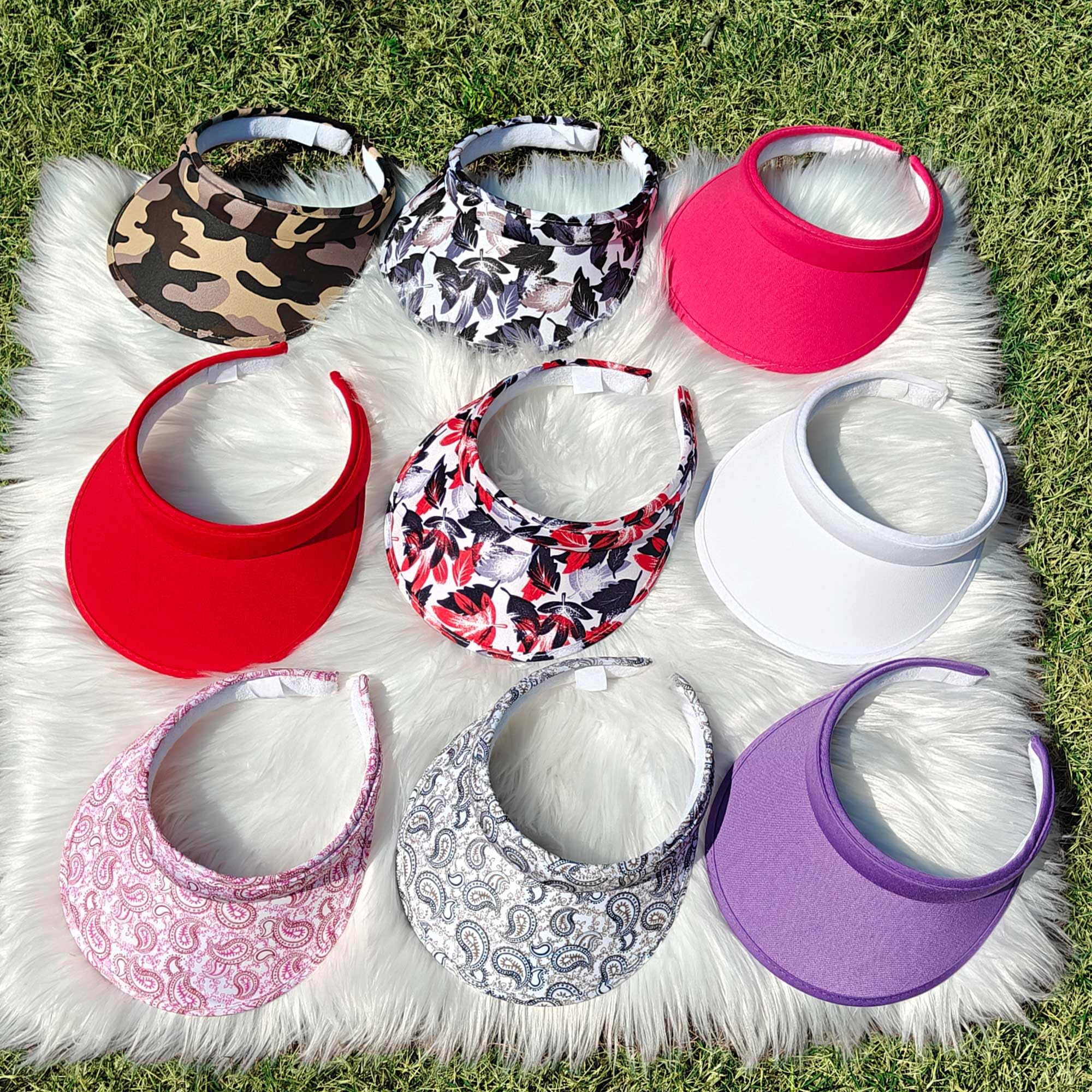 Multiple Colour:These visor hats for women have balck , white , blue , navy , khaki ,green, maroon, hot pink , red , purple.