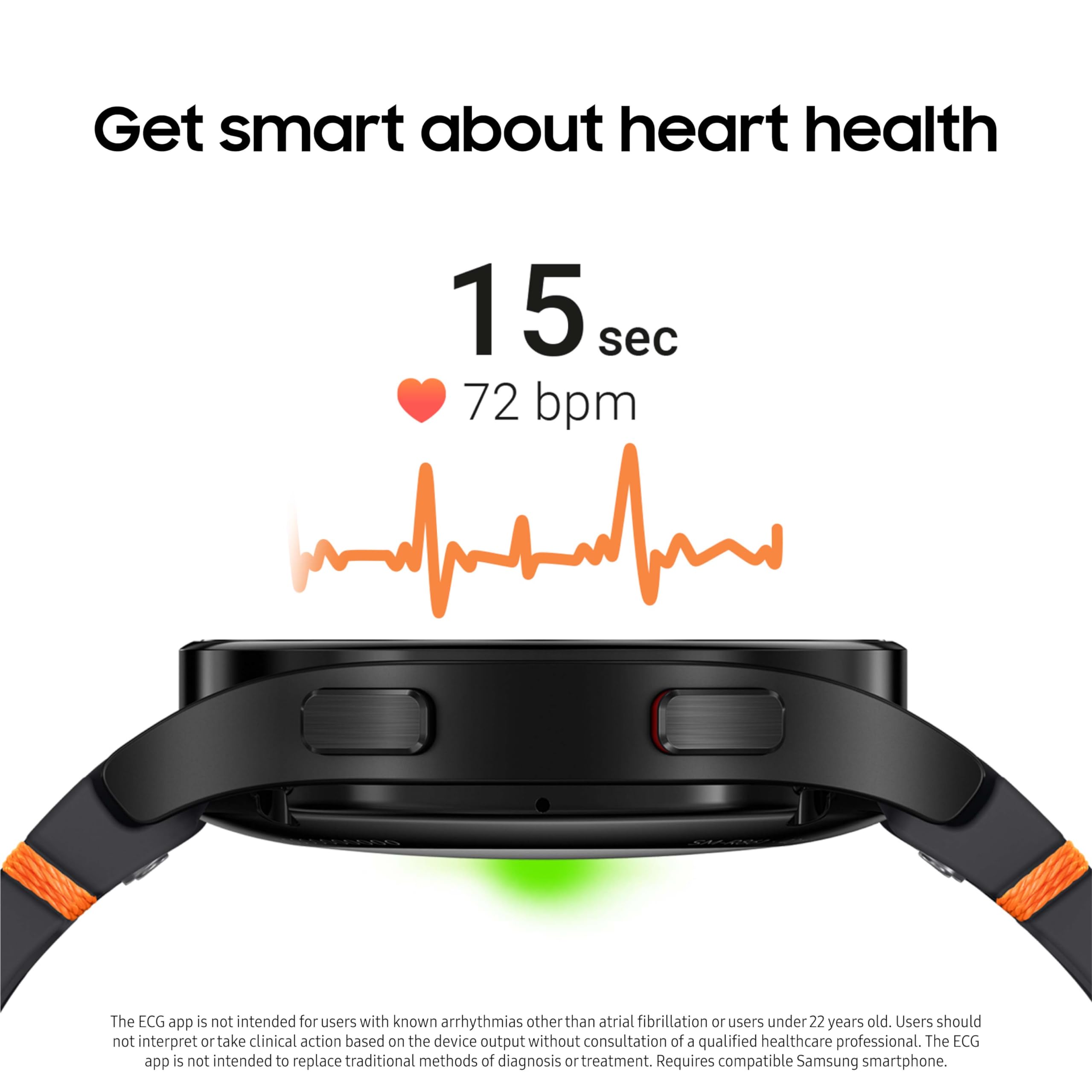 SMART HEART MONITORING : Galaxy Watch FE helps you keep an eye on your heart with ECG Monitoring & periodic heart rate measurements to detect irregularities⁴; Get a step ahead of your health by sharing these personalized readings with your doctor