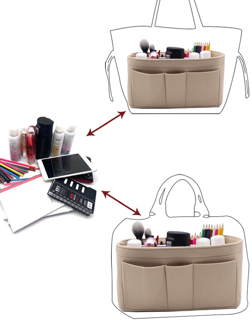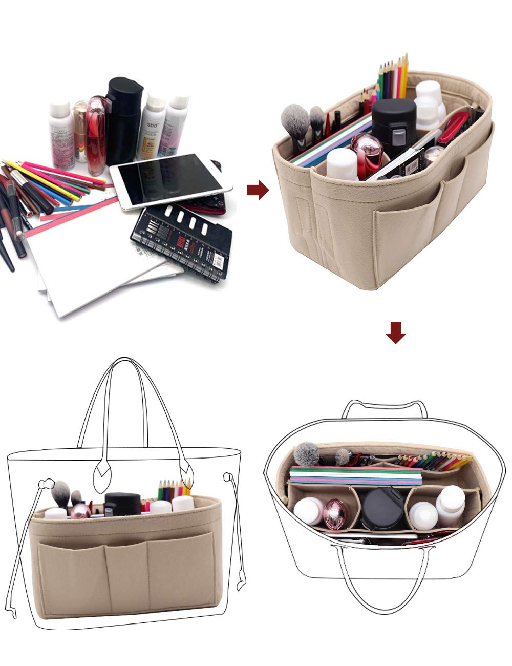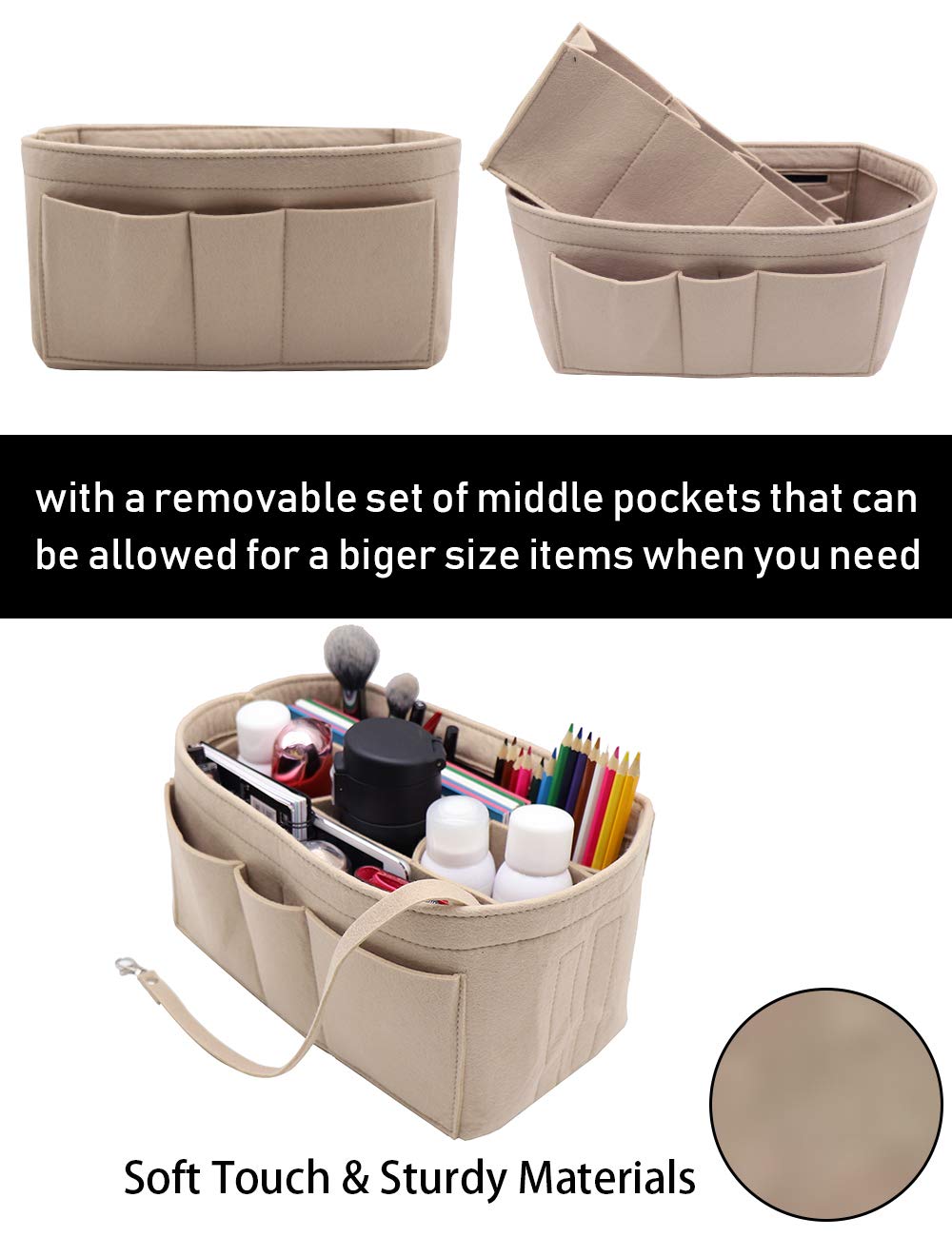 LIGHTWEIGHT & DURABLE---Strudy but Very Lightweight,Structured organizer bag in bag, Thick felt fabric better protect your items inside handbag.Fits for a variety of models handbags,Keep your Handbag shape and shipshape.