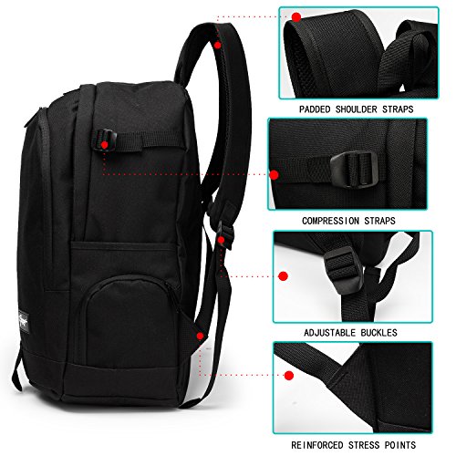 Description One Backpack for All Your Needs, Ideal for School, Travel, and Workout Key Features: -Double stitching at stress points adds valuable security to seams, handles, and straps, enhancing the durability. -Flexible and ample storage space with reasonable layout design in our conveniently portable bag makes getting out the door in the morning easier. -Twin metal zippers with fabric flap over to keep water out of the backpack and last much longer than plastic ones. Easy for opening and closing. -Comfort with featuring ergonomic designed adjustable padded reinforced shoulder straps, make the backpack all day use as a breeze. -Durable material is used to keep the back pack last longer with the great performance on water-repellent, wear-resistant and anti-scratch that benefits from the selected high-quality polyester fabric. Suitable Occasion: -School, Travel, Work, Commute, Camping, Hiking, Gym, Gift, Versatile. -Whether to cater your day-to-day organizing basis or your "extra-curricular" uses, our backpack is versatile enough for many use. -Great choice as a book bag or daypack during the week and a travel backpack or overnight pack on weekends. Or even as a diaper bag. Applicable People: Men, Women; College/University Campus Students, High/Middle school teen boys & girls, act. *Notes: 1. Differences up to 0.5" may occur due to manual measurement. 2.Item color displayed in photos may vary slightly from the actual product due to monitor color settings. 3. Please don't worry about the non-poisonous material smell with the bag when received, simply airing it out for some time, the smell will go away. For the utmost peace of mind in choosing a backpack, think Ricky-H, and choose us NOW!.
