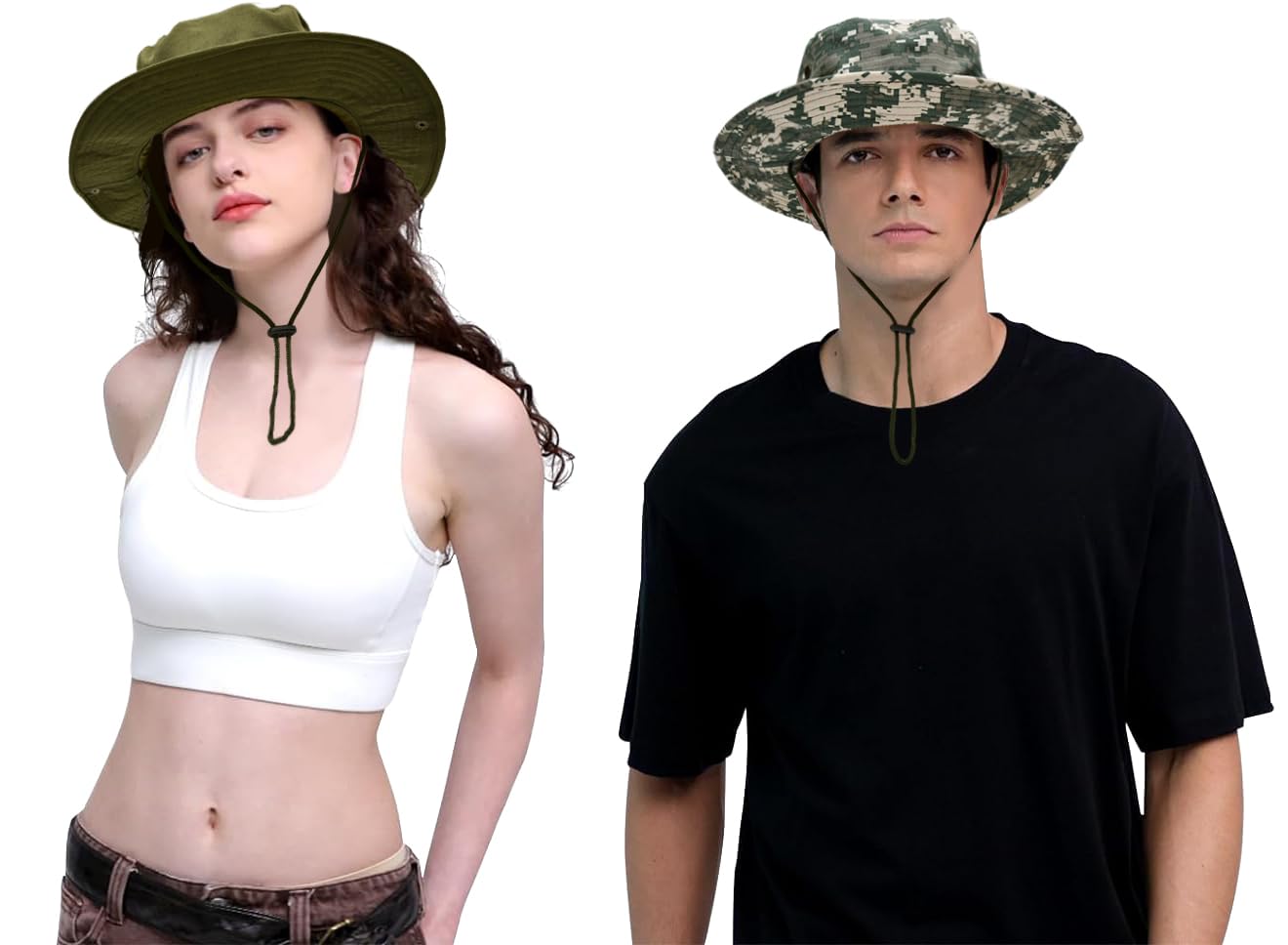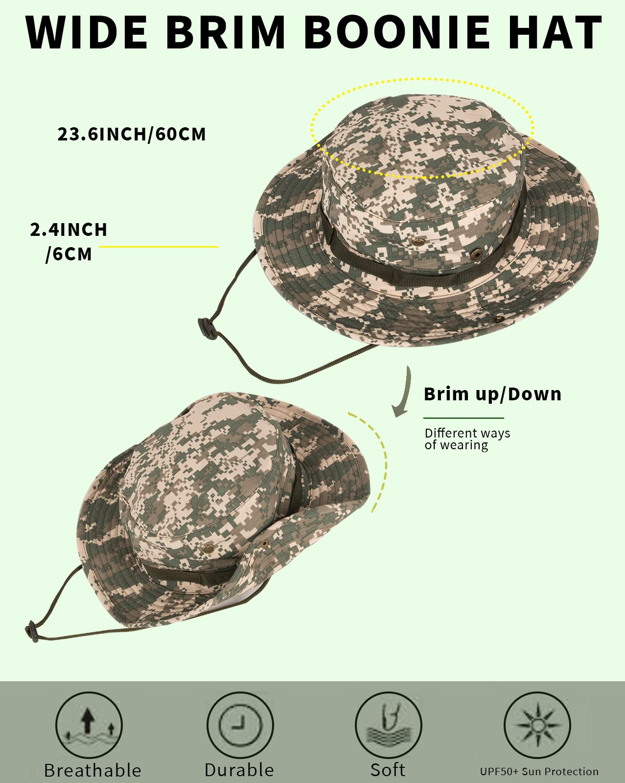 GOOD DESIGN WIDE BRIM HAT:The well-designed summer outdoor hat has two ways to use it. Both sides are equipped with rust-proof buttons. When the brim is rolled up, it is a cowboy hat. Loosen it, will be a fashionable sun-proof fisherman hat/safari hats for men and women.