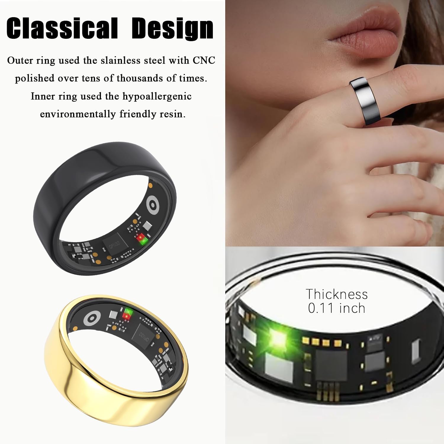 【Smart Sleep Tracker】Smart rings can record view your daily, weekly and monthly sleep data in the App, and monitor your falling asleep, waking up time, and sleep quality through charts. It helps you adjust your habits and improve your sleep quality