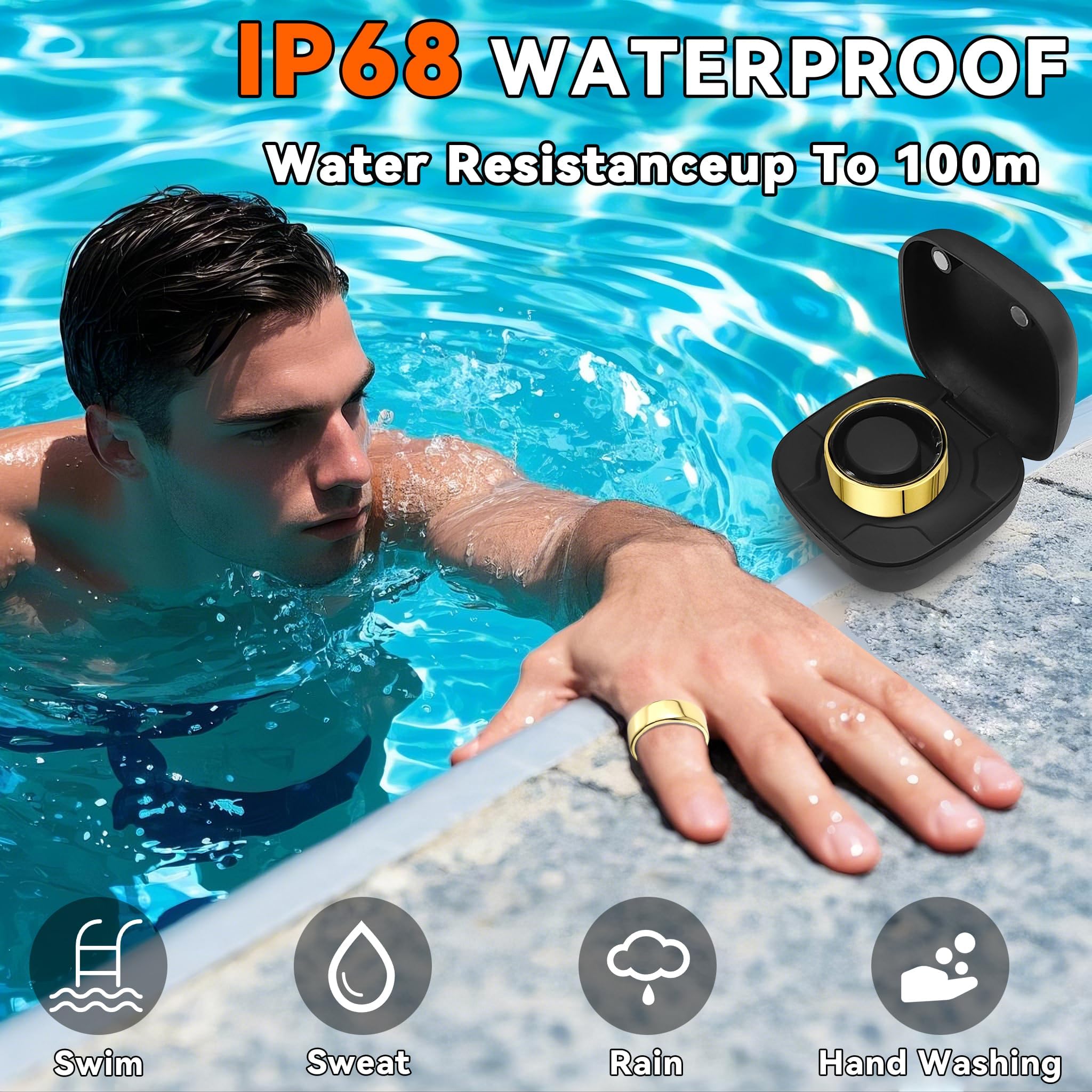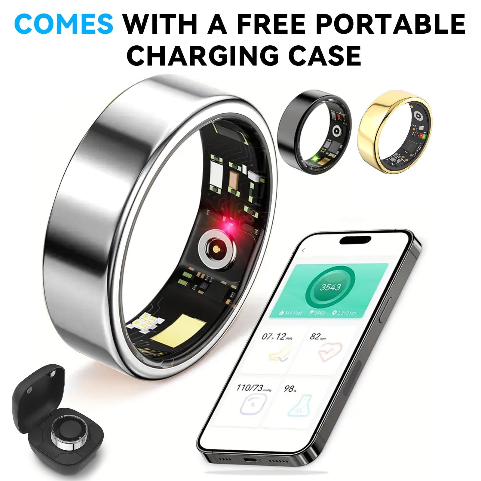 【Fast Charging & Wide Compatibility】Hivisuals Smart Ring offers a portable charging case, you can use the magnetic USB cable or charging case to charge the smart ring. This men's and women's fitness tracker can be used for 7-10 days with charging box. It also has wide compatibility and can be paired with smartphones with Android 6.0/ iOS 10.0 or above