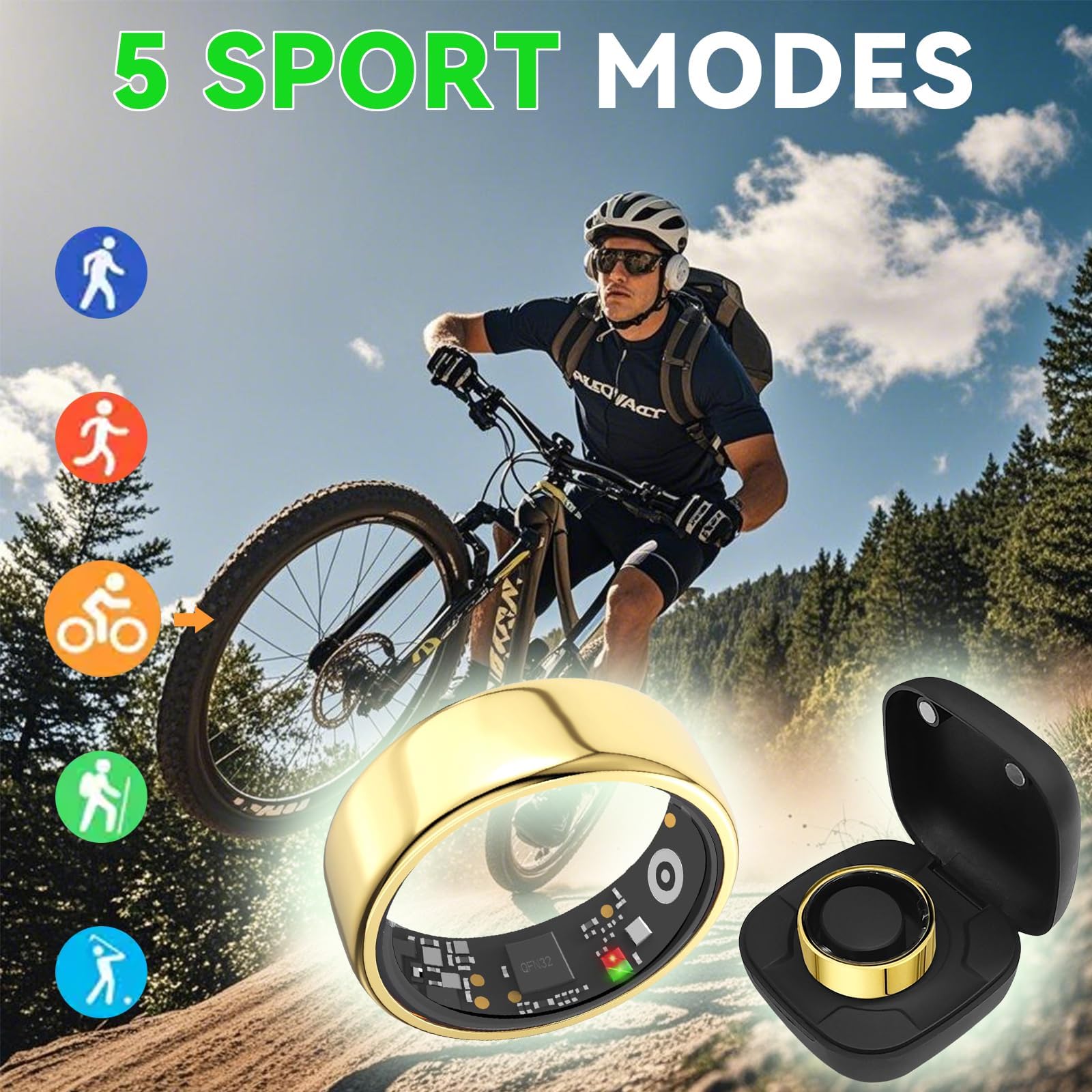 【Multiple Sports Data Tracking】Smart rings has multiple sports modes, such as running, hiking, biking, mountaineering, golfing and more. Meanwhile this men's and women's fitness ring health tracker will automatically track your steps, calories burned and distance throughout the day