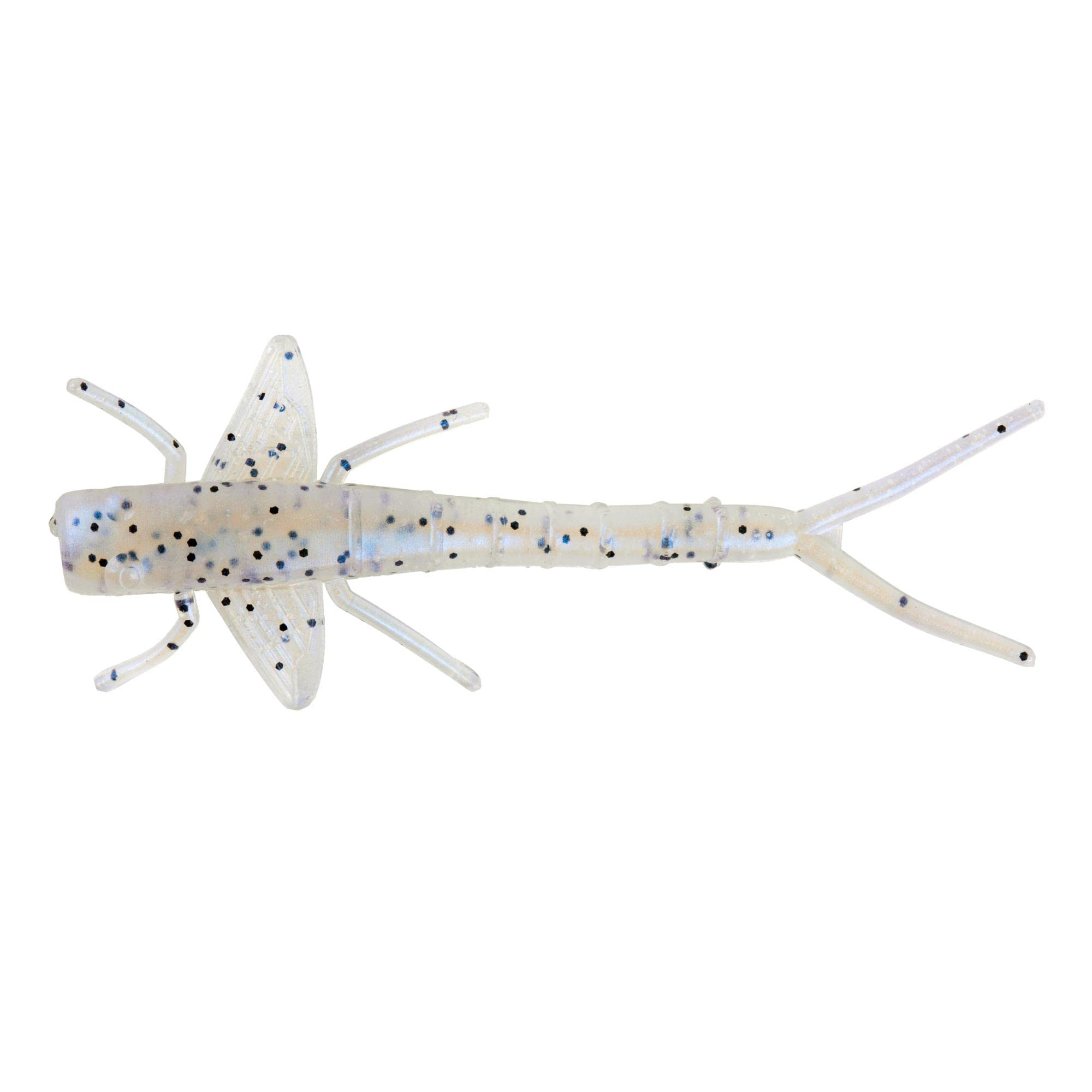 Natural insect profile with realistic features, including a forked-tail, ribbed abdomen, wings and legs.