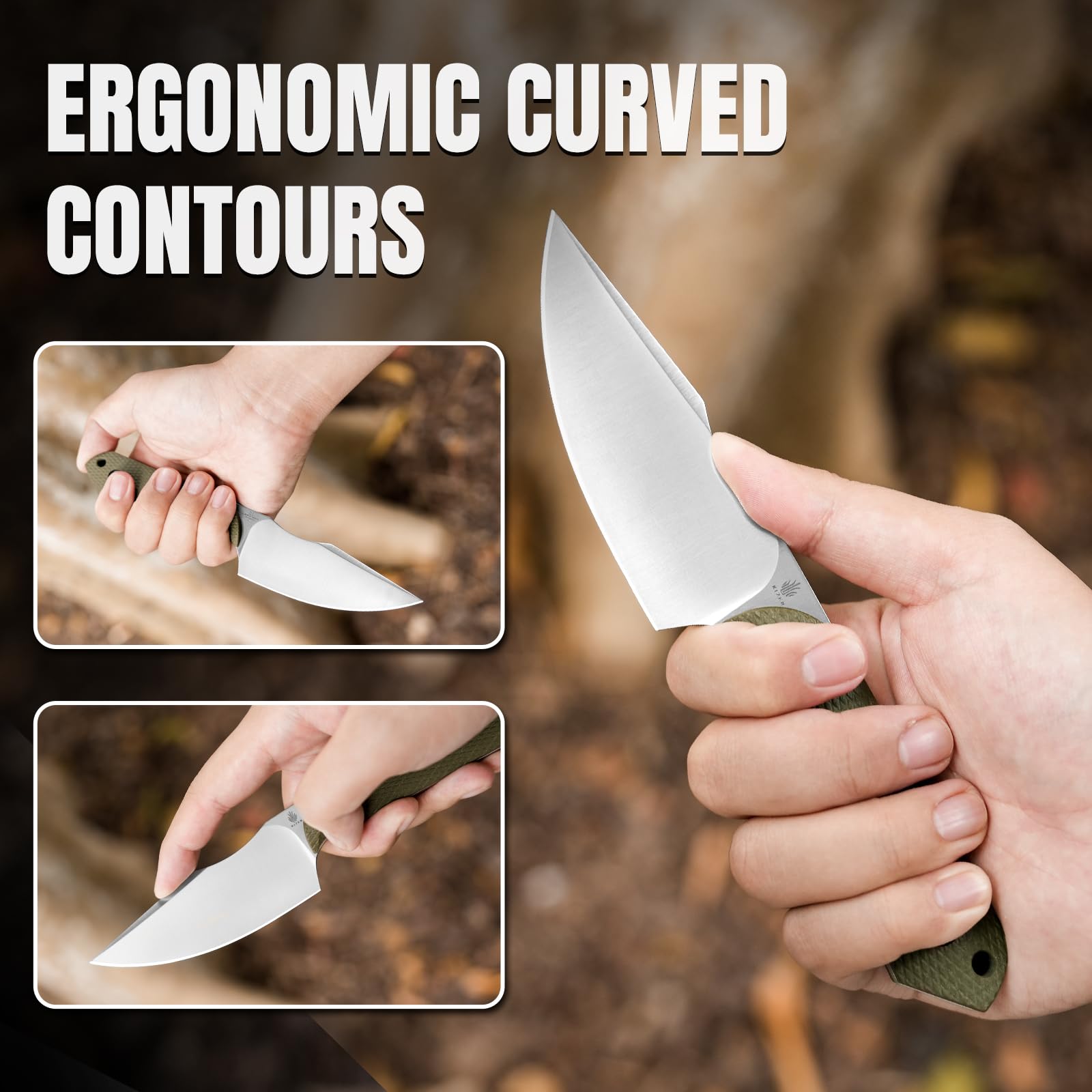 Excellent Grip & Ergonomics: Meticulous attention to detail is evident in the texture design on the handle, which offers excellent grip and tactile feedback. The back of the camping knife exhibits a subtle curvature that combines aesthetics with ergonomics, ensuring comfortable thumb placement during use and enhancing the overall user experience.