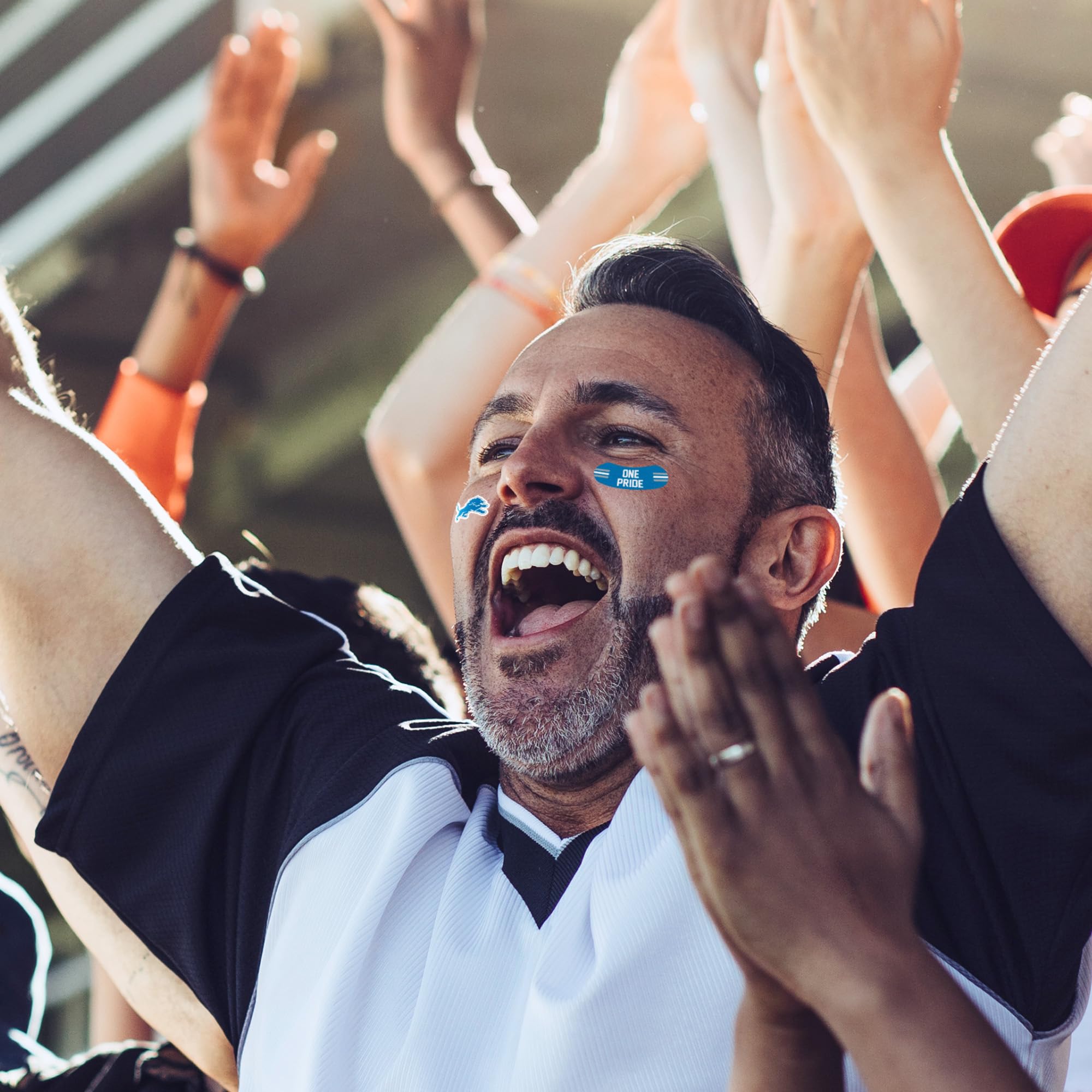 No matter where you go, everyone sees your face. It's inevitable. So why not go to that house party or the big game with your face just as decorated as the rest of you? The Peel and Stick Tattoos Set by Rico Industries includes 8 small tattoos that are decorated with bold and vibrant team colored graphics. They are printed on 3M hypoallergenic tape and no water is needed to apply, making for an easy peel and stick! Showing team pride has never been so easy and fun!