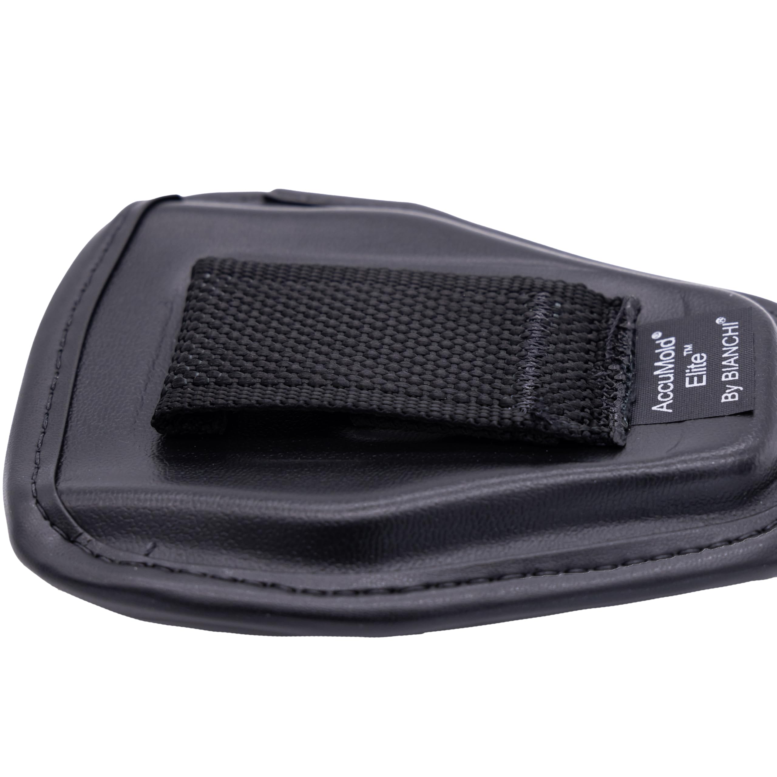 The Model 7934 AccuMold Elite Open Handcuff Case features a pull through style for easy access to the cuffs. Made of trilaminate construction with a synthetic leather-like finish. A dual web belt loop design conveniently accommodates both 2 in. (50 mm) and 2.25 in. (58 mm) belts widths.