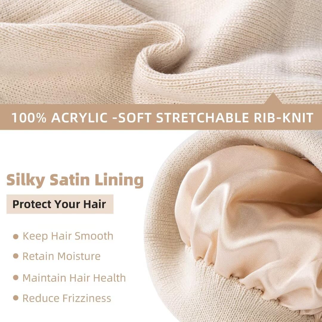 【3-Piece Set】You'll receive 3 pieces of knitted satin lined hats in 3 colors, The classic colors and quantity can meet your daily needs and replacement, perfect for daily wear and sharing with friends.