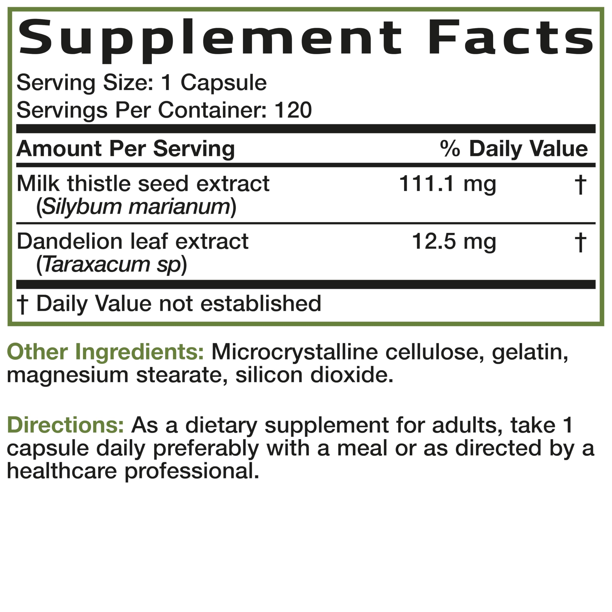 Liver Health Support*: Bronson Milk Thistle with Dandelion Extract helps to support healthy liver function.*
