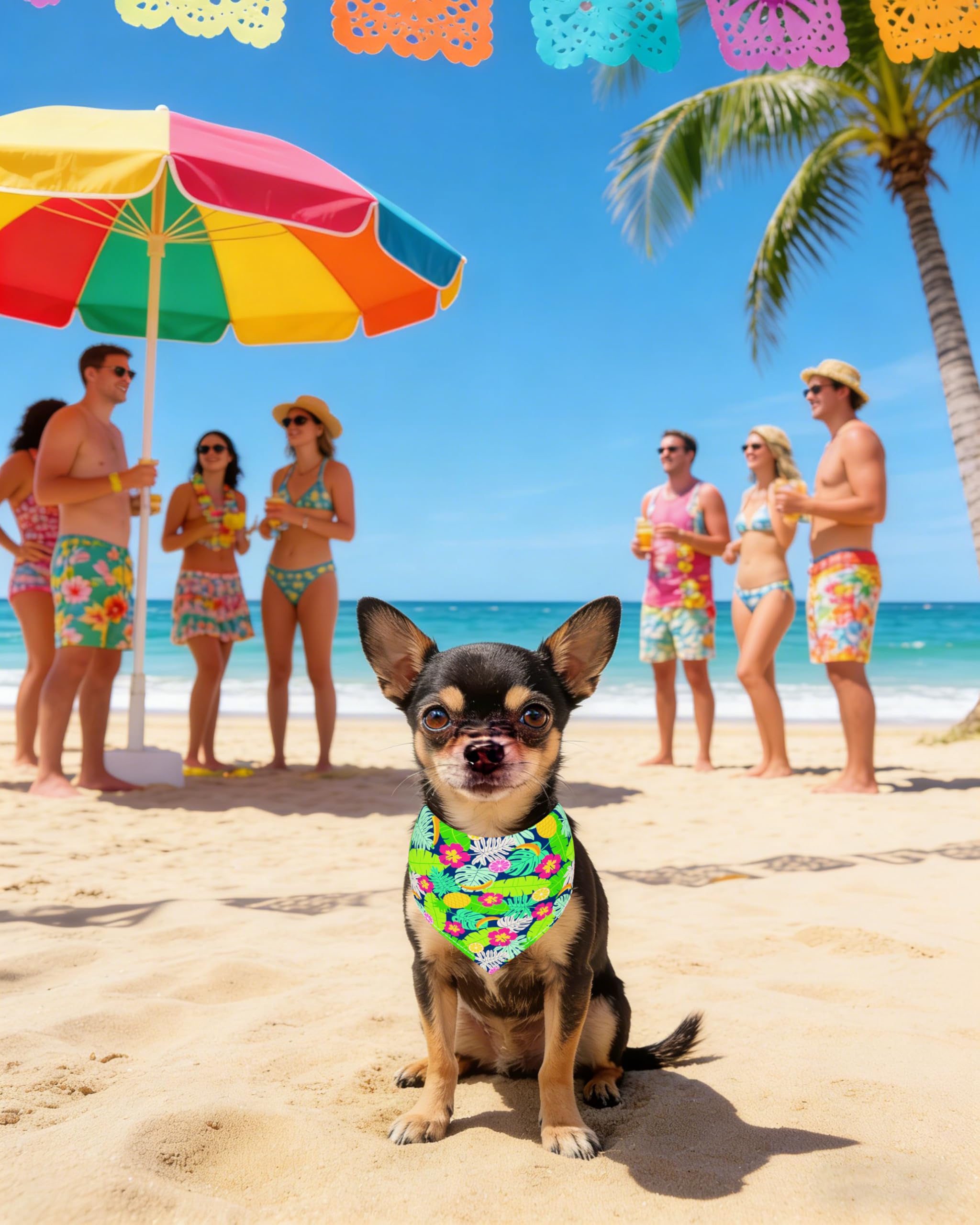 Material: Crafted from soft, high-quality polyester fabric that maintains color vibrancy after multiple washes. With fine workmanship and clear printing, the dog bandanas Hawaii remains comfortable even during extended wear—letting your pet enjoy summer without any irritation