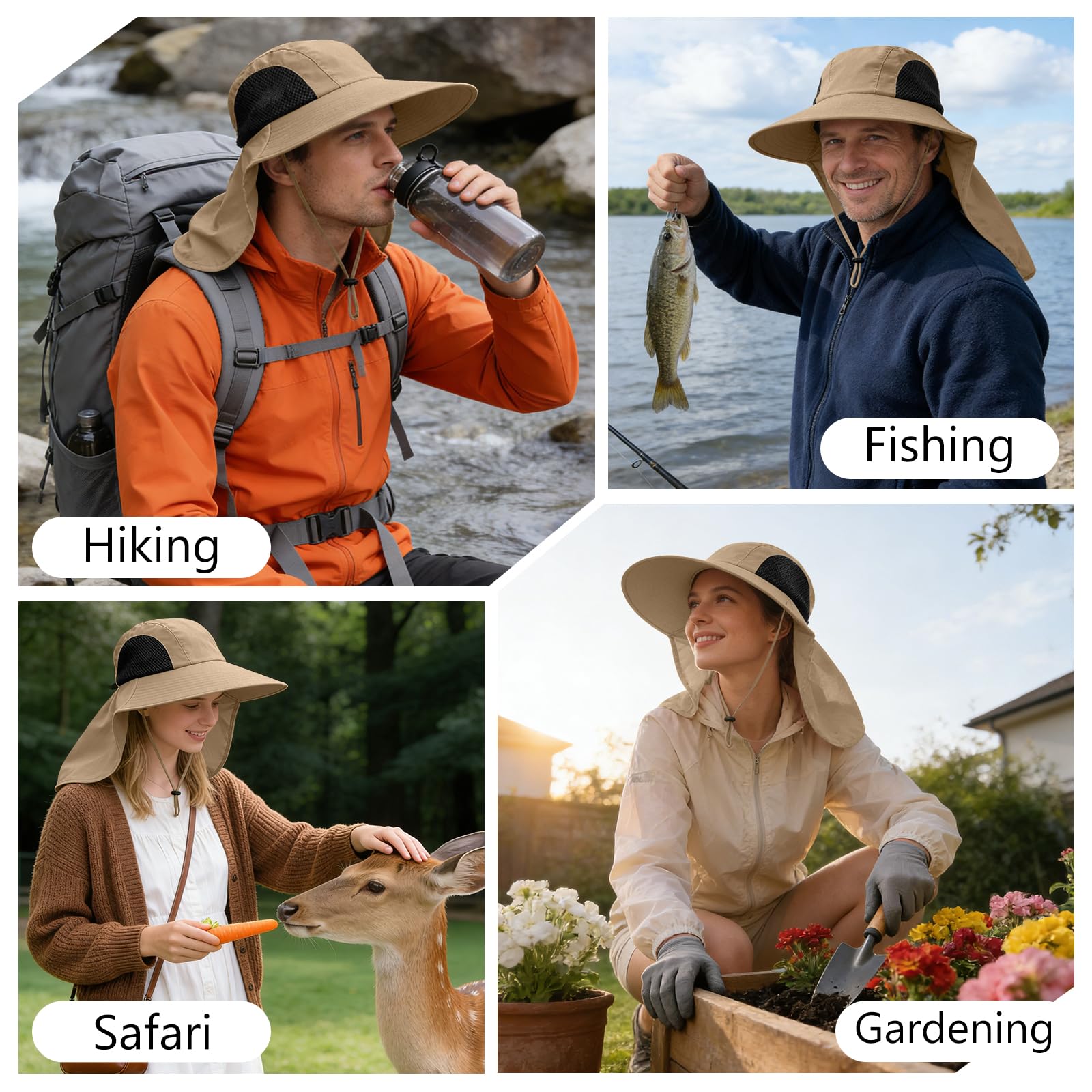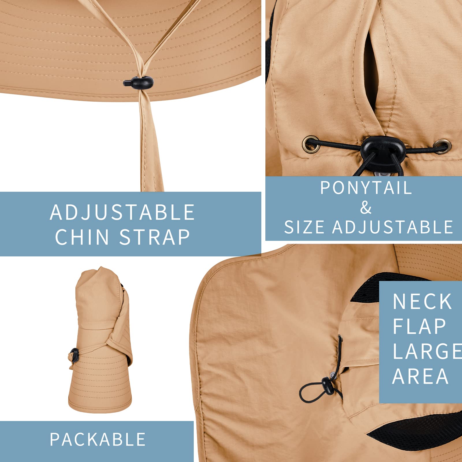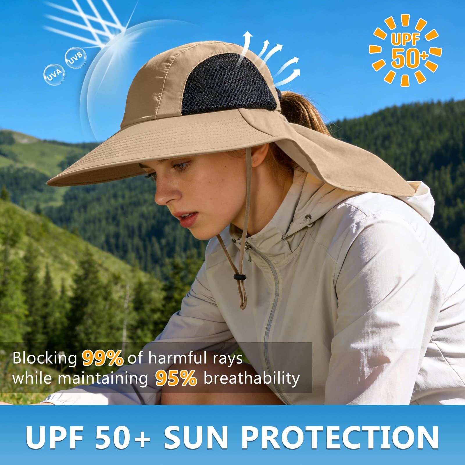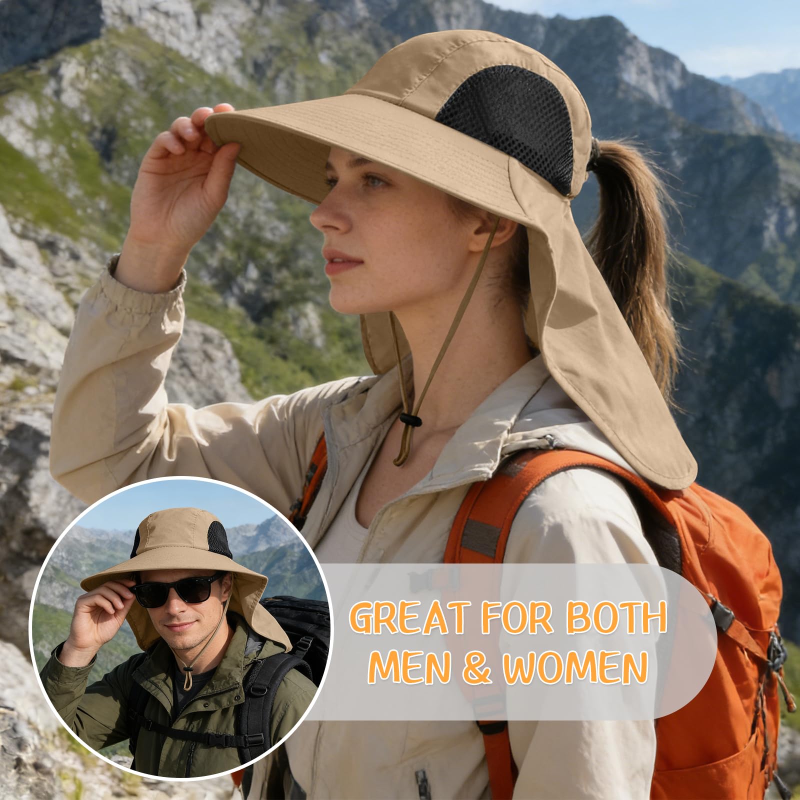 PERFECT SUN PROTECTION FOR HEAD AND NECK – The outdoor hat has a large wide brim and neck flap to protect you from the blazing sun at all angles. The hat is rated for 50+ UPF to protect against harmful UVA and UVB rays, offering complete UV protection for your face, ears, and neck.
