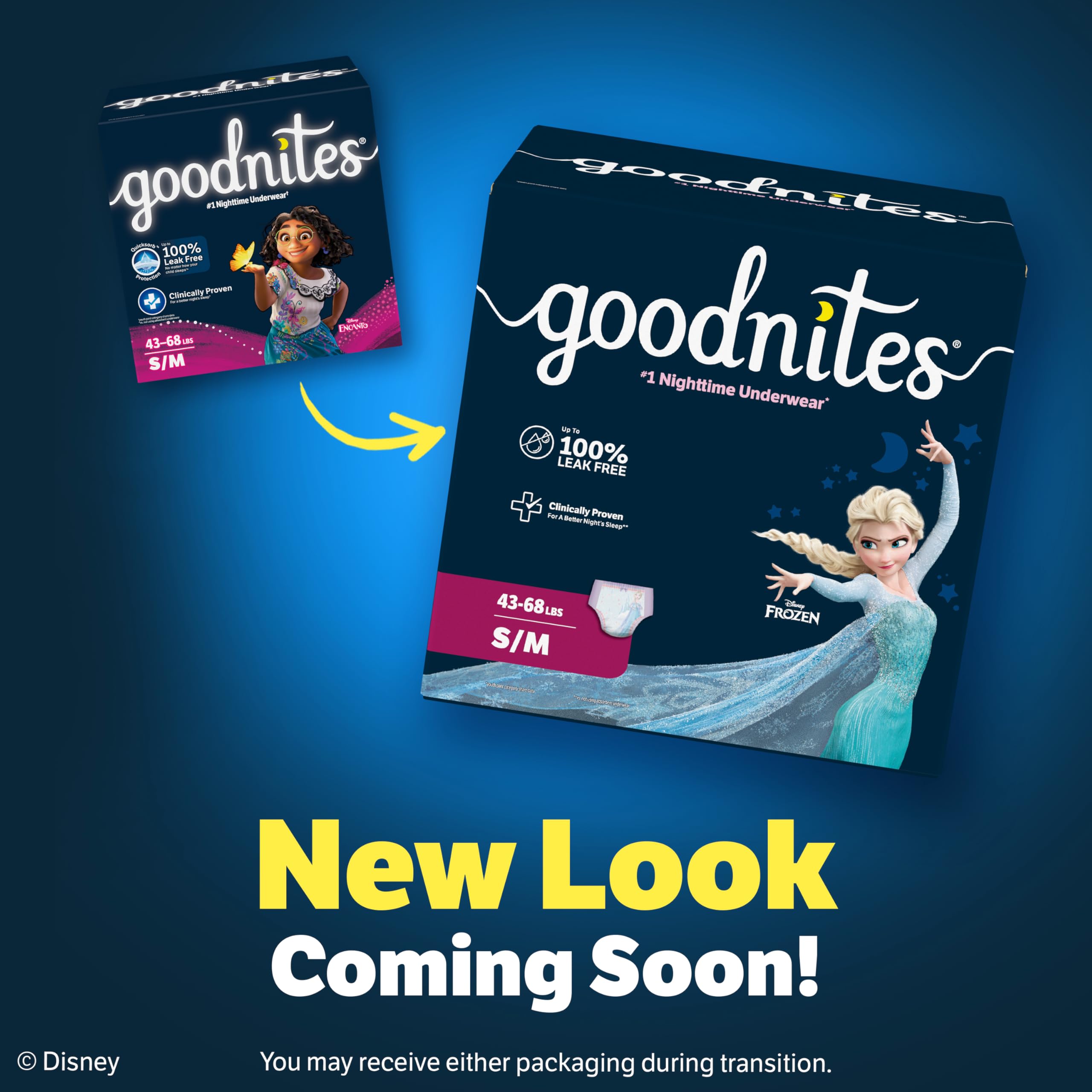 Goodnites Girls' Nighttime Bedwetting Underwear: 14 overnight underwear for girls, size small/medium; fits children 43-68 lbs, packaging may vary