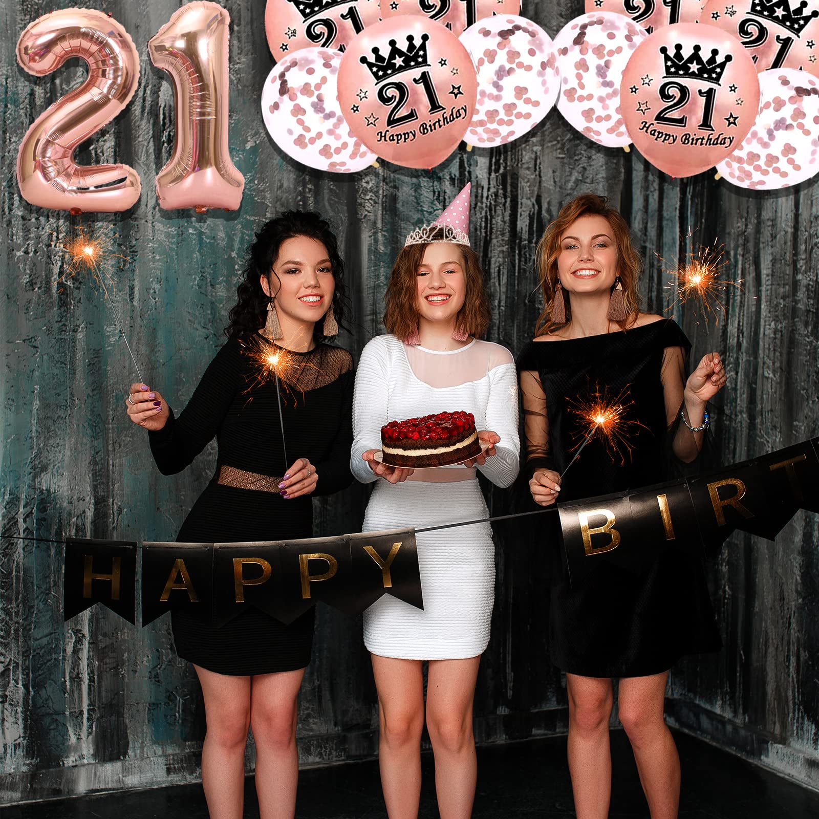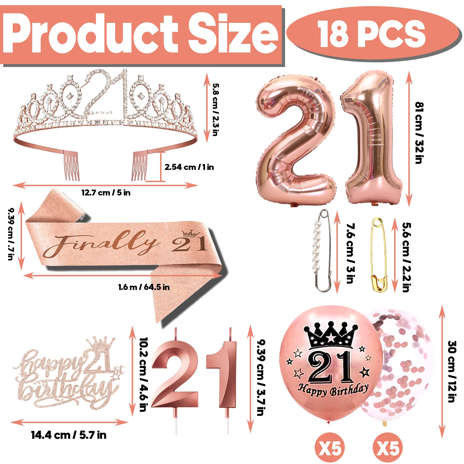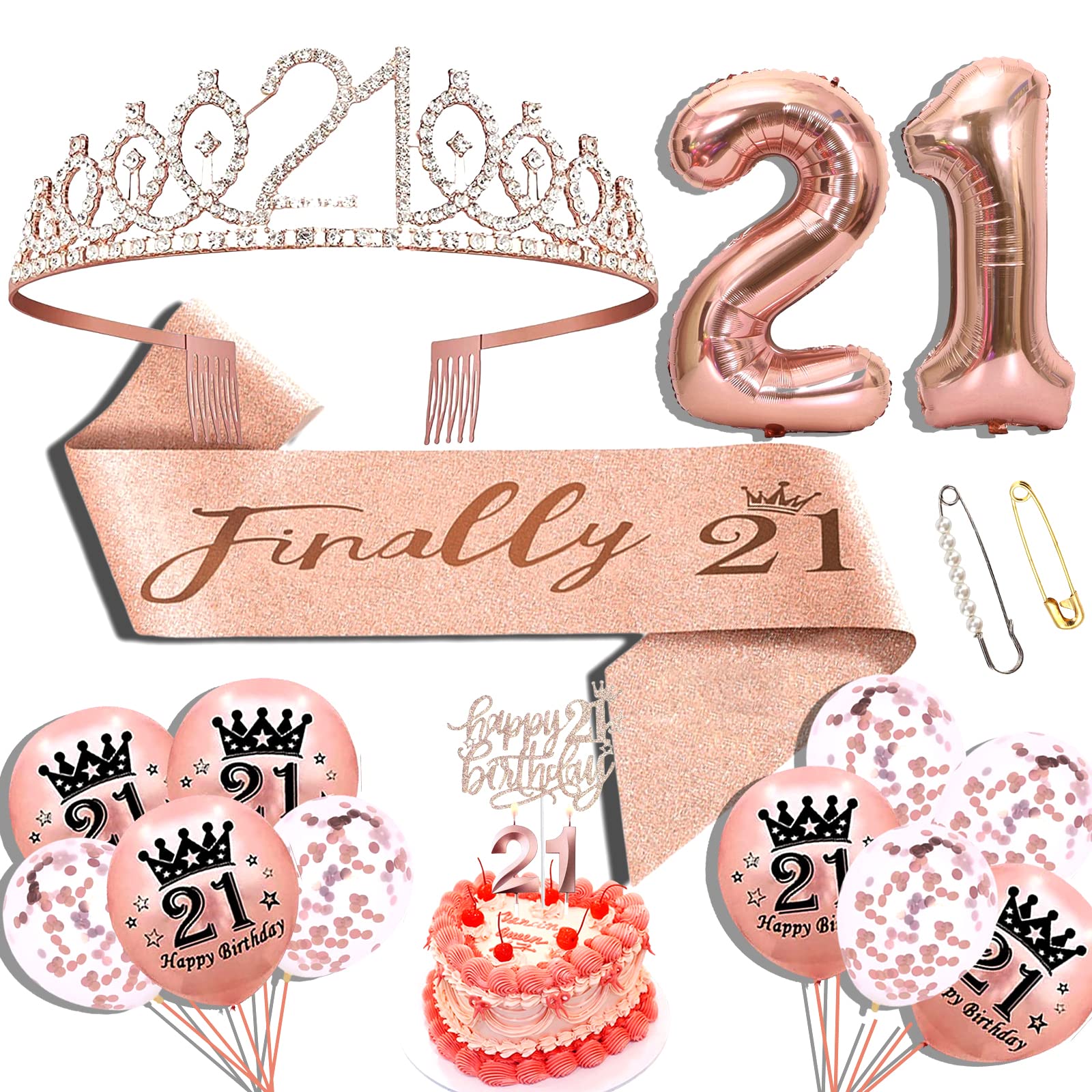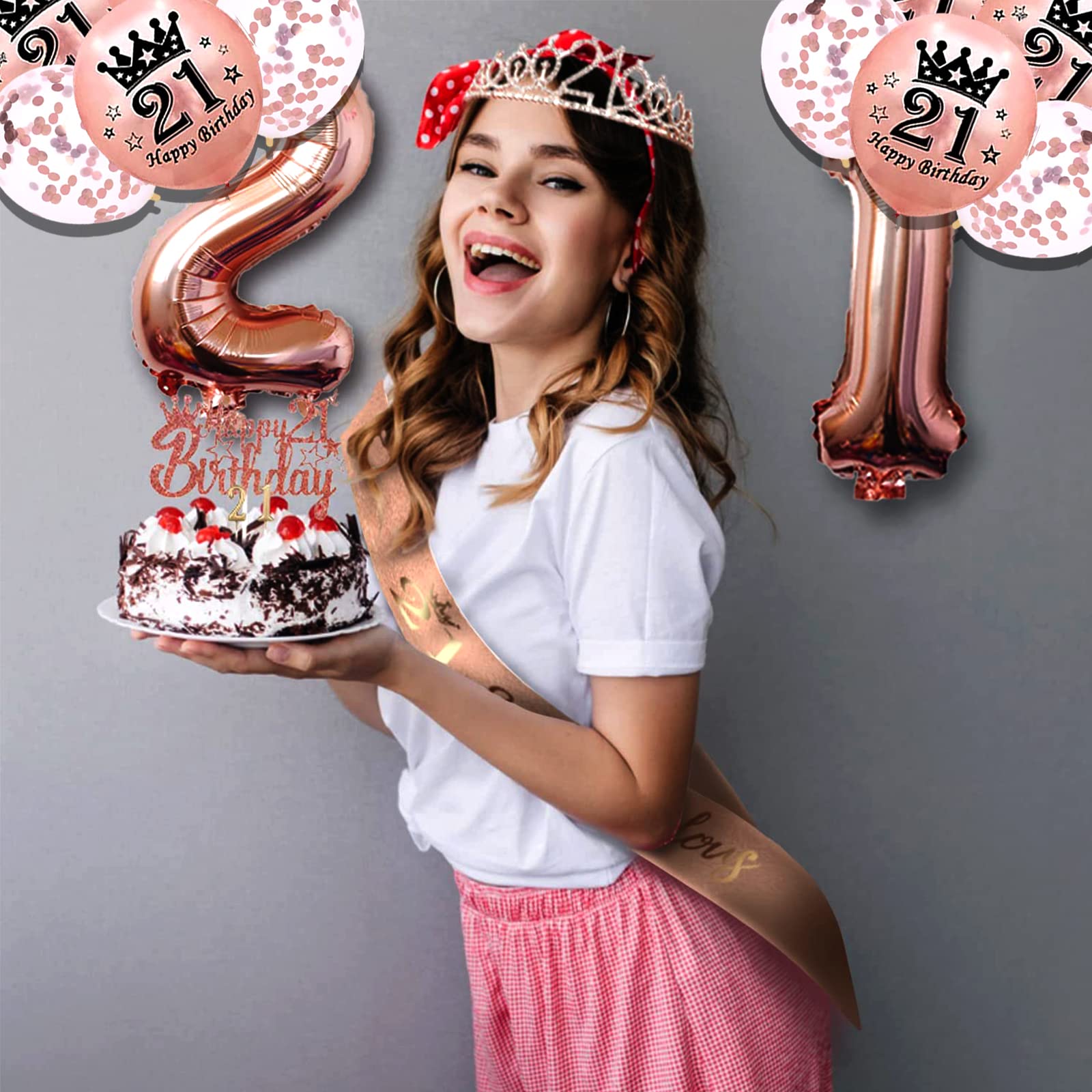 【21st Birthday Decorations For Her】: Package coming with rose gold 21st birthday crown 1pc, 21 birthday sash 1pc, 21st birthday balloons 12pcs, happy 21st birthday cake topper 1pc, 21st birthday candles, this Birthday Gifts for women remind her and everyone in the 21st birthday party how fabulous she is.