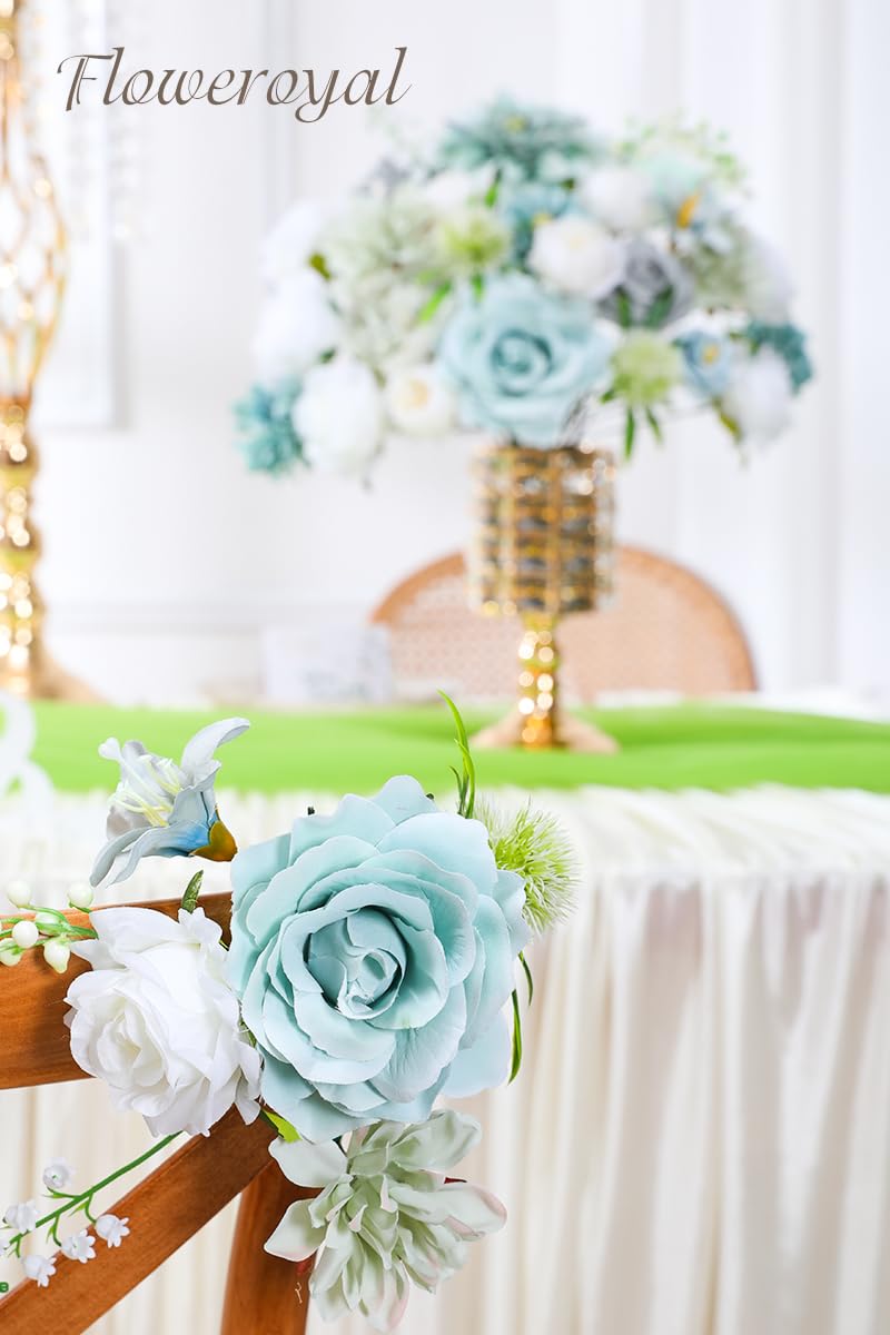 ♔GORGEOUS MIXTURE & UNIQUE DESIGN-Floweroyal artificial teal blue flower set contains a beautiful variety of flowers, as well as some plastic stems to use for floral arrangements. The blossoms are made of silk flowers with plastic centers and greenery. Vibrant color and elegant touch make it more real. A varied mix of flower shapes and shades, which makes for a very attractive, nicely-toned arrangment. Go well with the florals you already have at home. Great for filling your living spaces.