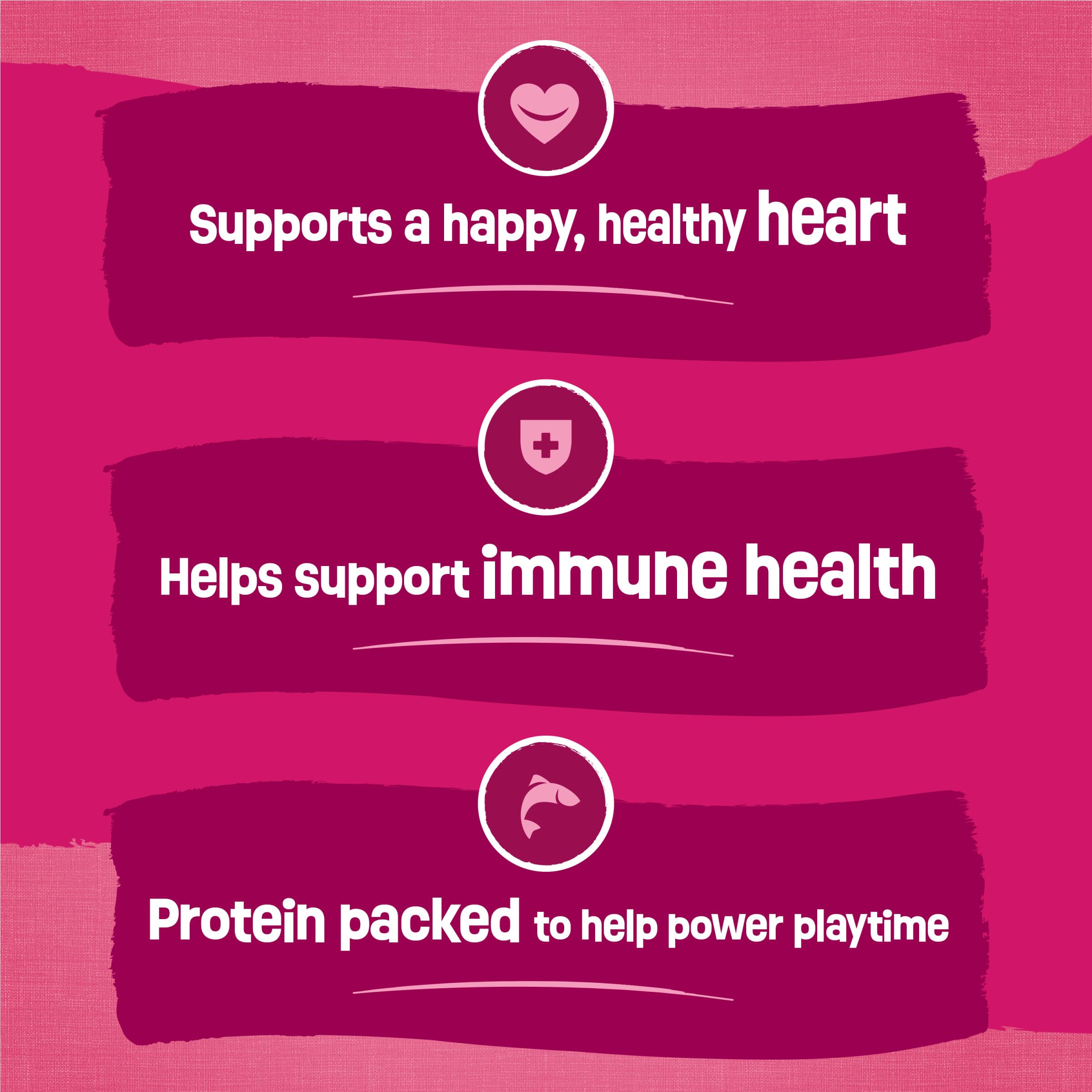 Friskies dry cat food with 100 percent complete and balanced nutrition formulated for all life stages, including essential vitamins and minerals for the everyday nutrition cats need