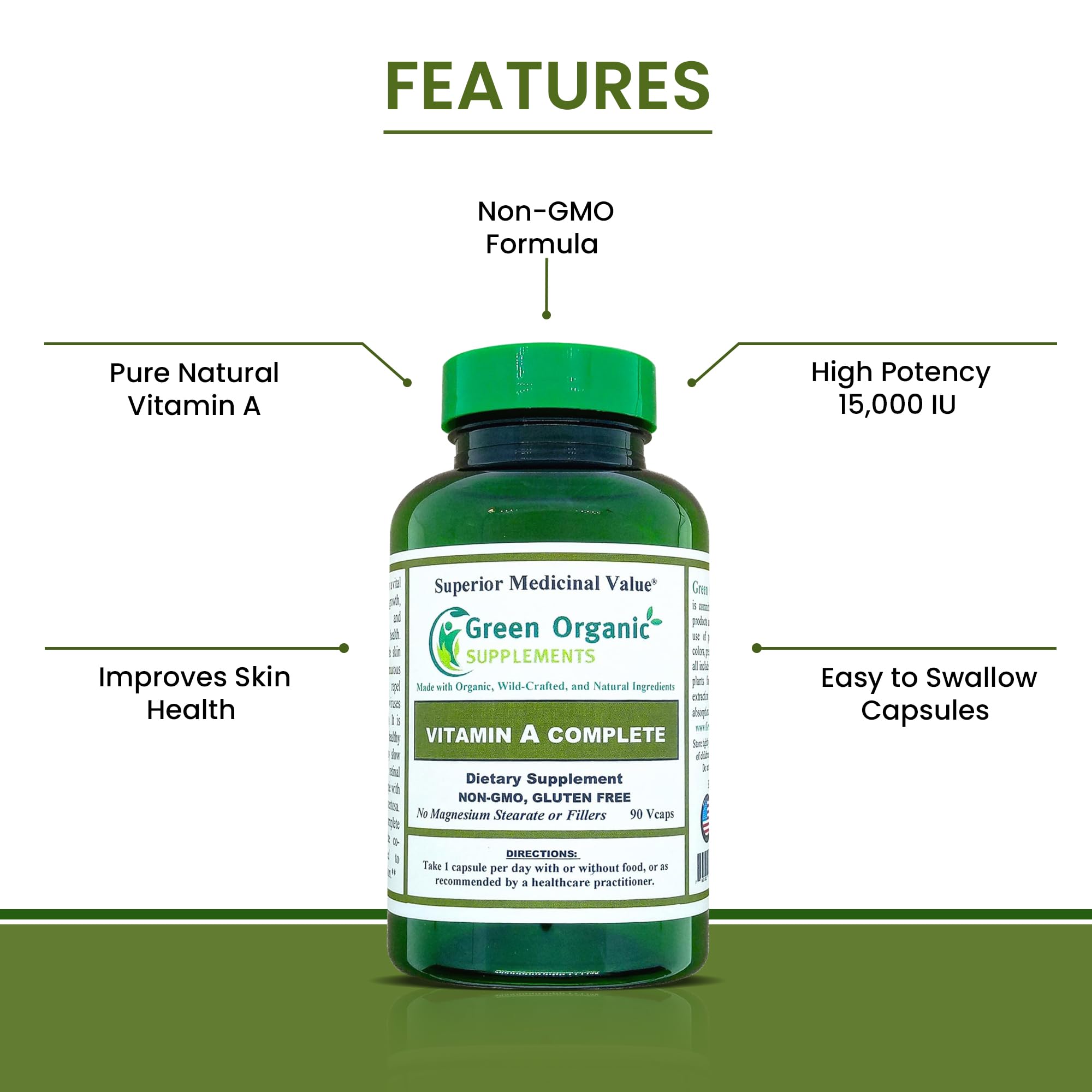 Discover the natural goodness of Green Organic Supplements' Vitamin A capsules. Crafted in easy-to-swallow form, these gluten-free capsules make a smart addition to your daily routine. Sourced from high-quality natural ingredients, our supplement supports your well-being. Elevate your nutrition effortlessly with a formula designed for those seeking a gluten-free dietary choice. Embrace the power of Vitamin A in a convenient capsule, brought to you by Green Organic Supplements.