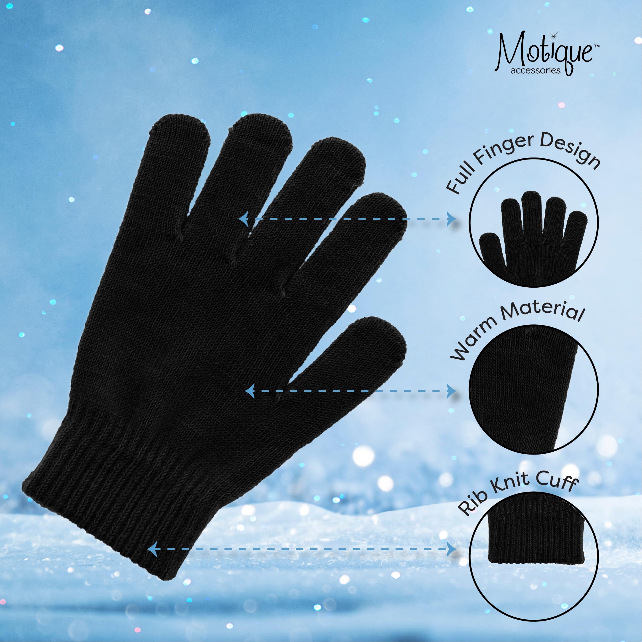 Motique Accessories Ladies Gloves Magic Knit Gloves for Women Solid Colors - Black