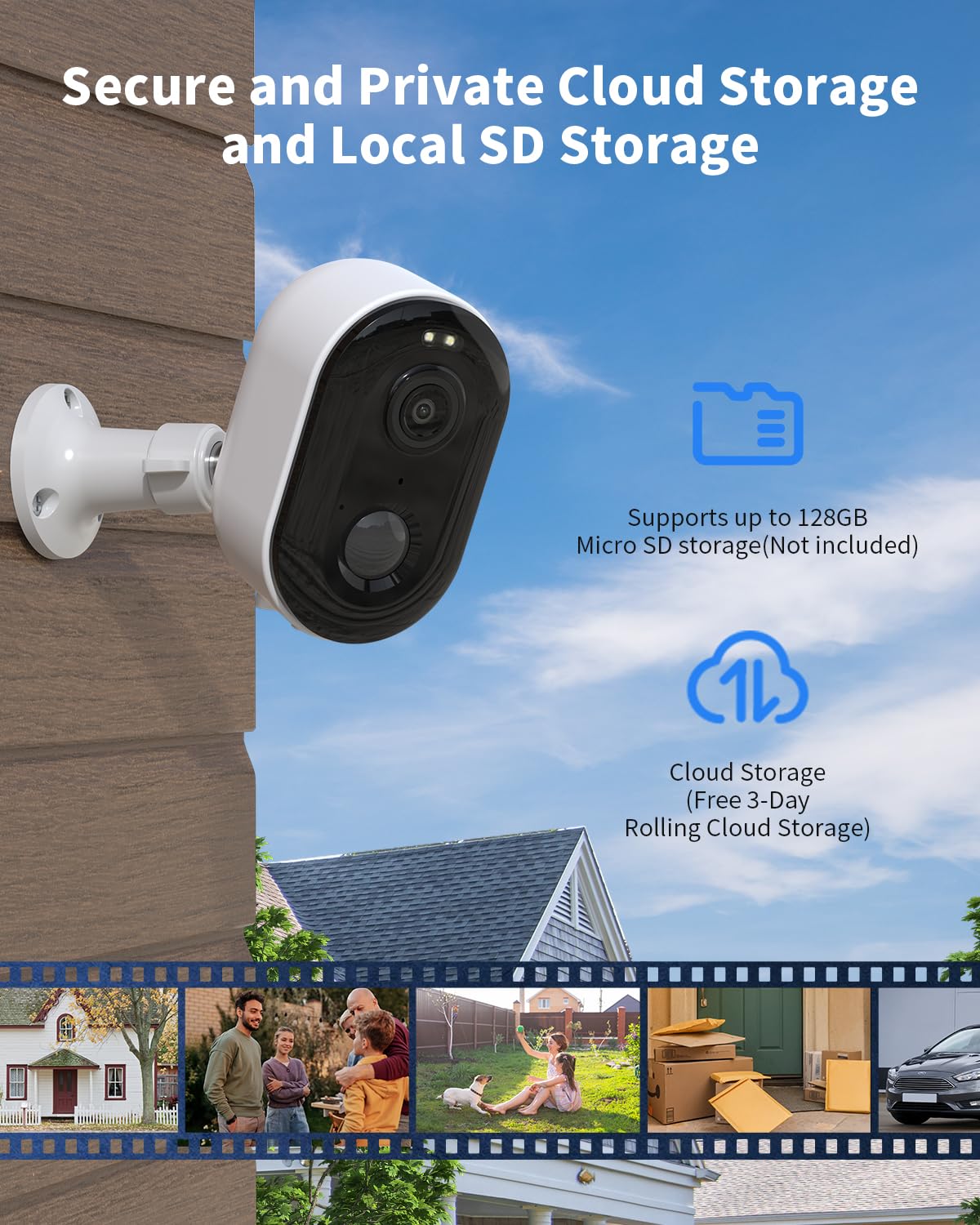 【Free 3-day Rolling Cloud Storage & SD/Cloud Storage】Home security camera supports SD card (up to 128GB) and cloud storage. It offers free rolling 3-day cycle cloud storage and you don't need any subscription to enjoy the storage service. It also offers a 30-day free trial of premium features including AI recognition, upgraded cloud storage, customized alert zones, and more, with premium features starting at $2.99 per month after the 30-day free trial.
