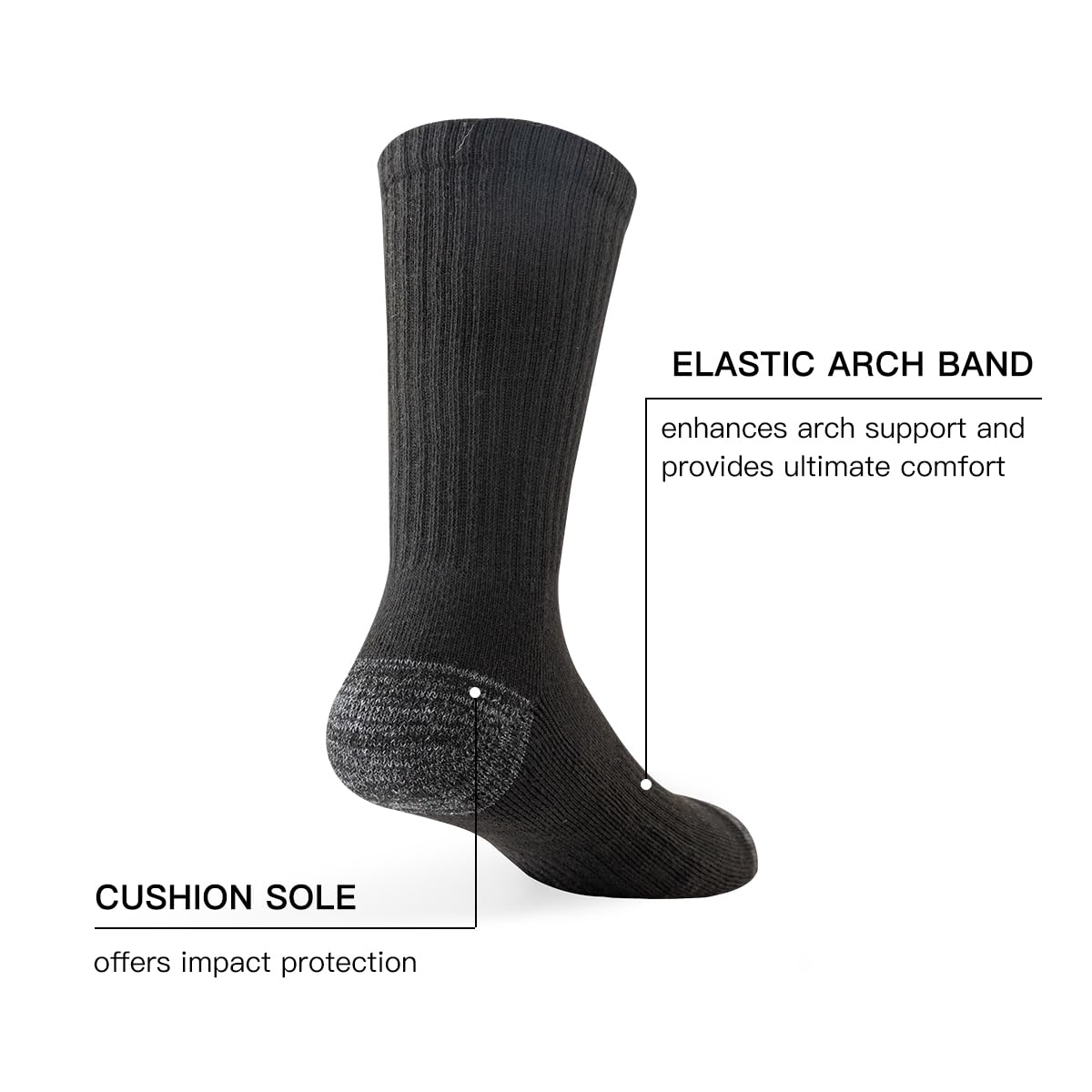 PERFORMANCE: Max Cushioning-Max Cushioning place in areas of high impact to reduce sock and foot pain during sports or daily activity. Deep Heel Pocket-Engineered heel pocket to provide true fit during wear. Arch support-Arch support to improve foot arch fatigue and keep sock in place. Reinforced heel and toe-Reinforcement in heel and toe provide durability in high stress areas to dramatically in improve product life.