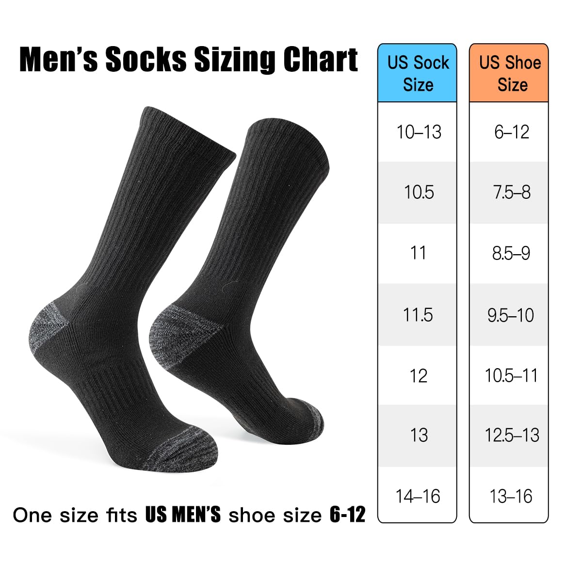 QUALITY MEN'S SOCKS: Made of 95% polyester,5% spandex. Our men's crew socks are strong, durable and breathable enough to keep your skin to keep you dry and comfort. Moisture transport system wicks sweat away from the body.