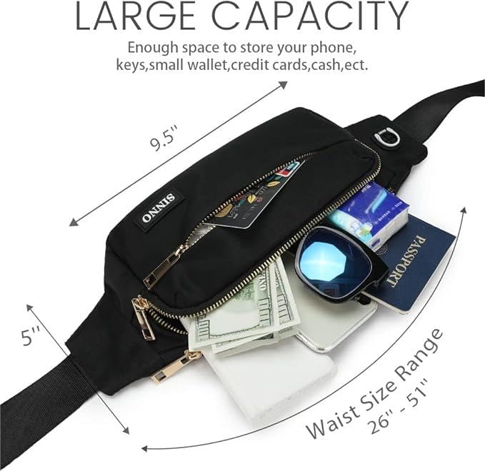 【Best Gifts for Men Women】Our fanny pack size is about 13.5"x 5" x 3.5" with 4(Four) zippered pockets perfect for most people who want to be hands free to carry the most needed items,include all size of phone(iphone 13 14 pro max...), passport, keys,ID and other travel essentials. Perfect for various outdoor activities such as Running,Hiking,Shopping,Traveling,Walking Dog,Jogging,Cycling,Fishing,Going to Sporting Events,Themepark,Day Trips,etc.A great Gift for Women Men Kids and Family.