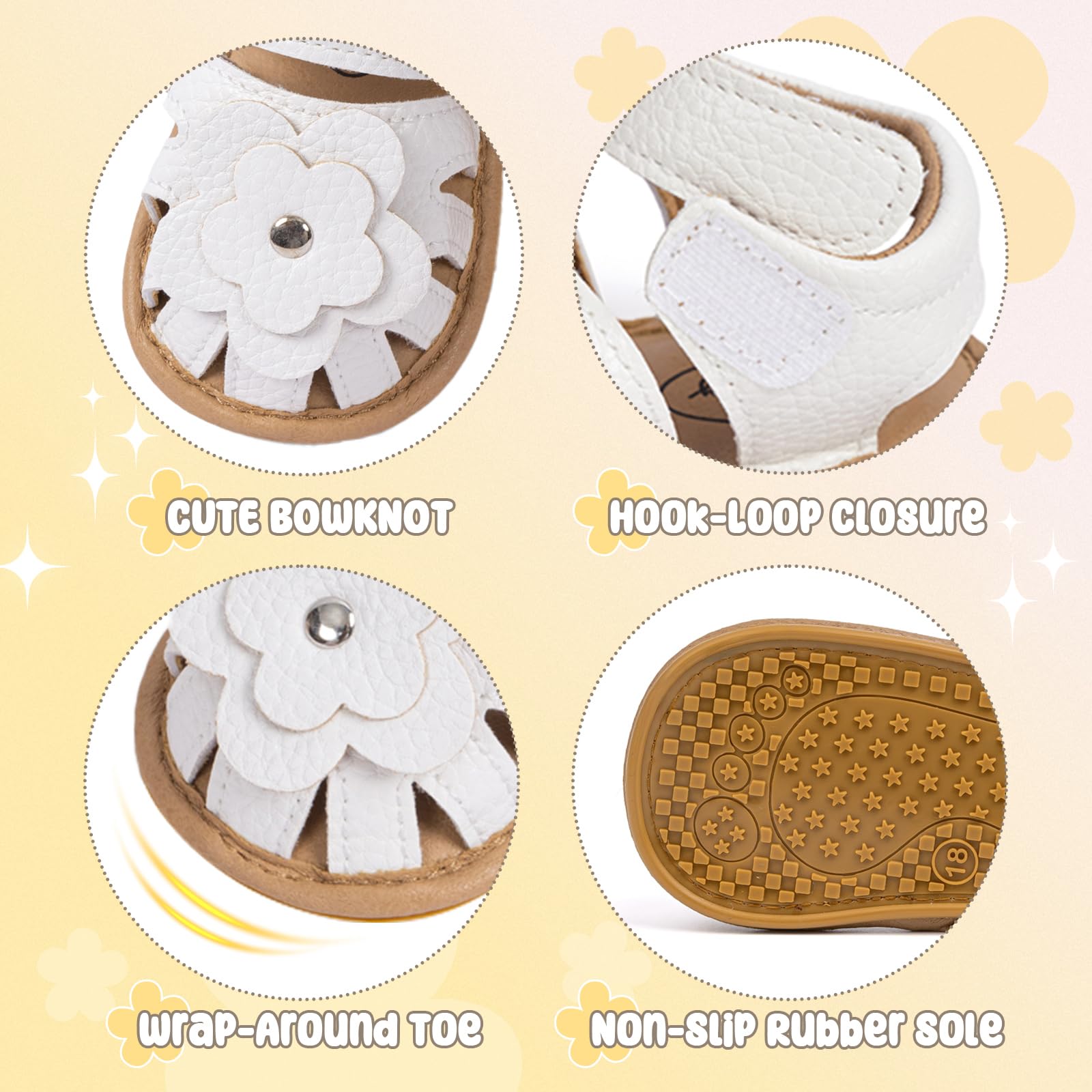 HOOK LOOP: Easy to put on, and easy off with hook loop closures on ankle strap, it can easily adjust the size and fit. Still stay on your baby’s feet