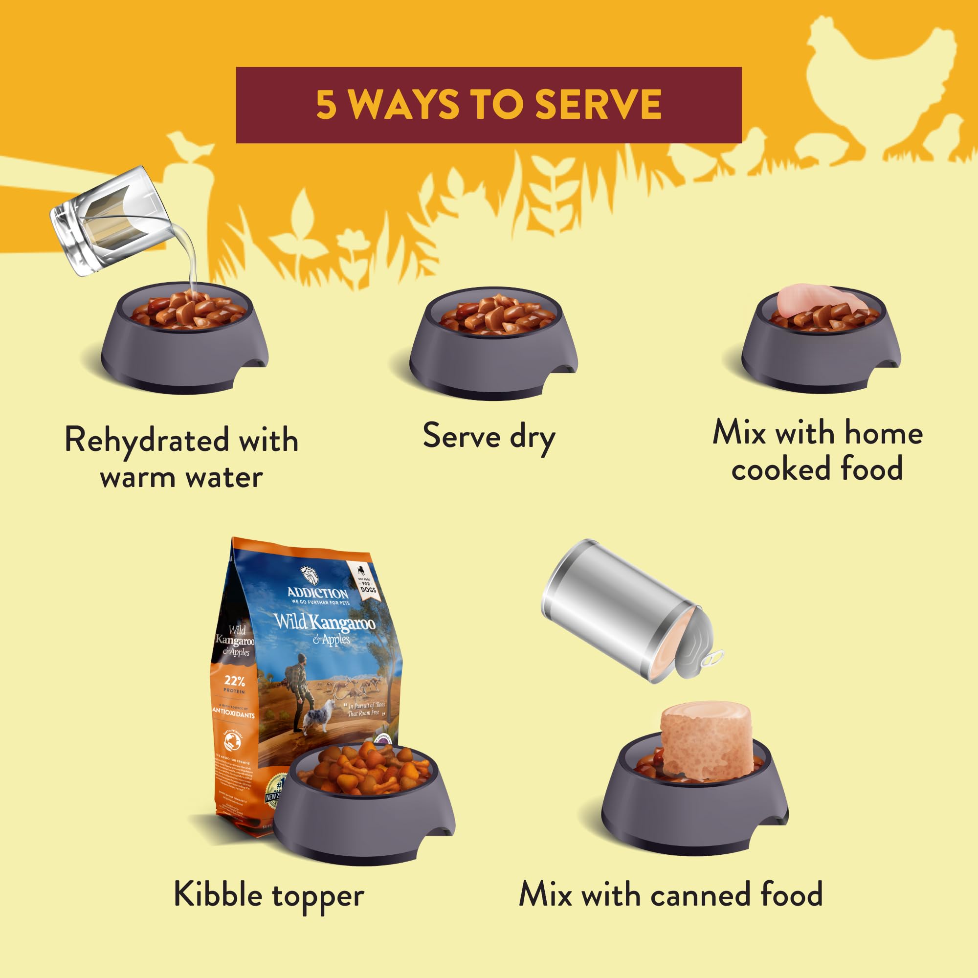 Can be served in different ways: Serve it on its own, as a kibble topper, with home-cooked food, or with canned food.