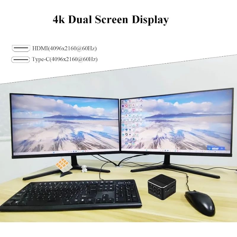◆UHD Graphics & Triple Display: N100 processor integrated UHD Graphics, 2HD(4096× 2160@60Hz) and Type-C(4096× 2160@60Hz) Triple display interfaces support 4K@60Hz.