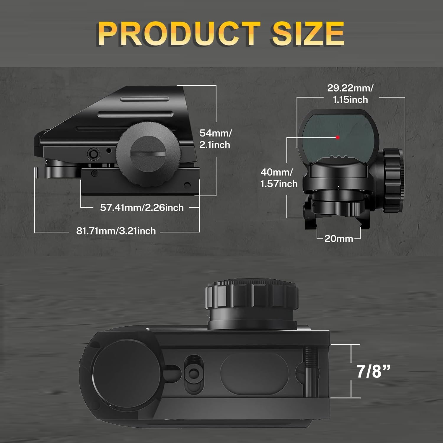 User-Friendly Design: The reflex sight is designed with ease of use in mind. Adjust windage and elevation effortlessly with the stepless dials, allowing for precise zeroing and customization. The sight easily mounts to any firearm with a 20mm Weaver or Picatinny rail, providing a secure and reliable attachment.