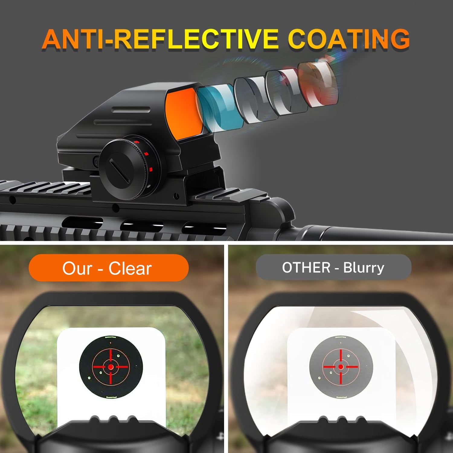 Unlimited Eye Relief: Parallax free design makes the red dot stays on target, no matter where the shooters' eye is.