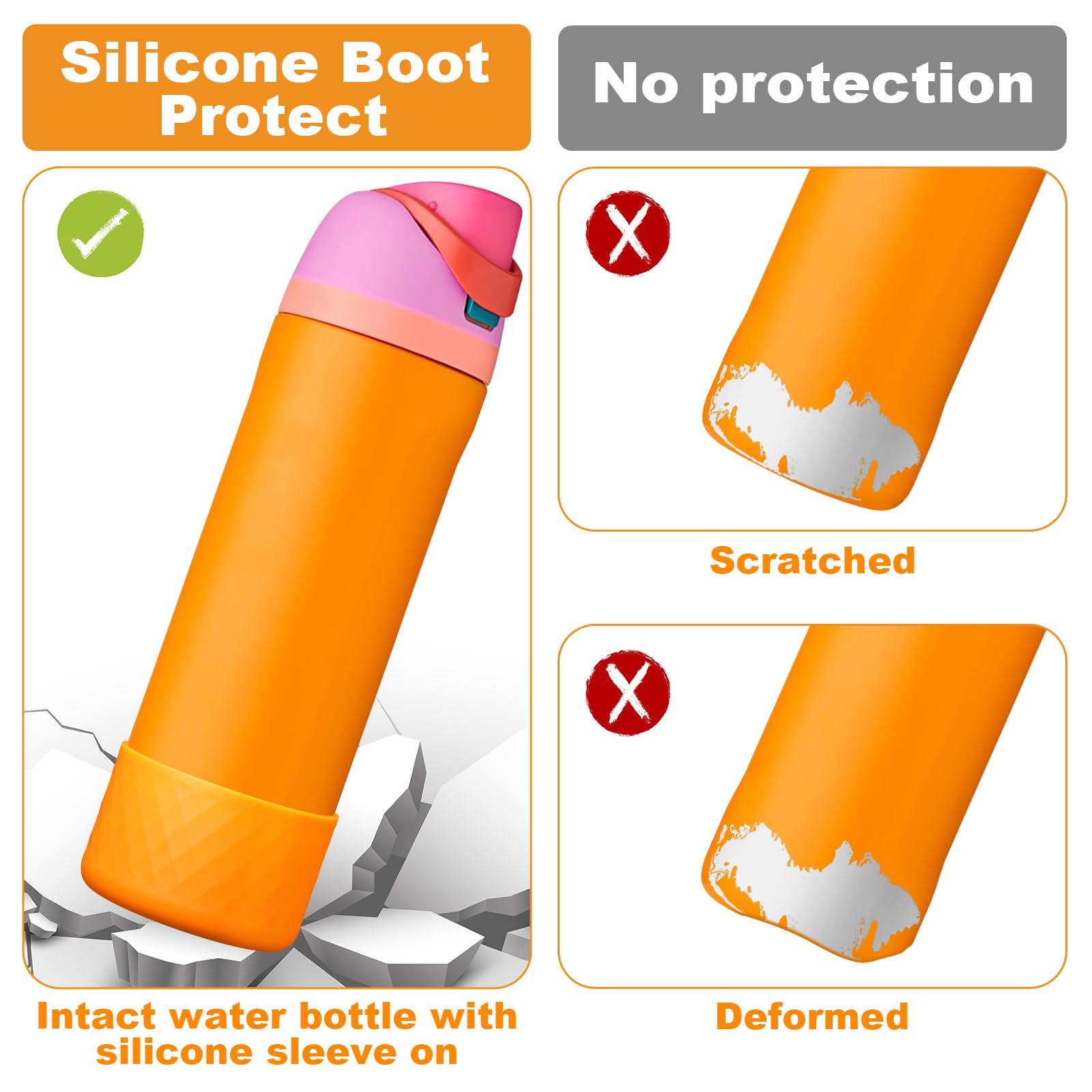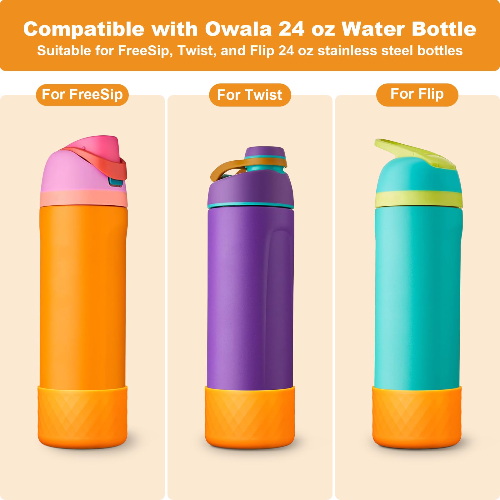 【Perfect Compatiblity】The silicone boot is suitable for Owala 24oz FreeSip, Twist, and Flip stainless steel water bottles. It is precisely made according to the size of the original cups, which perfectly fits the cup bottom and won't fall off easily.