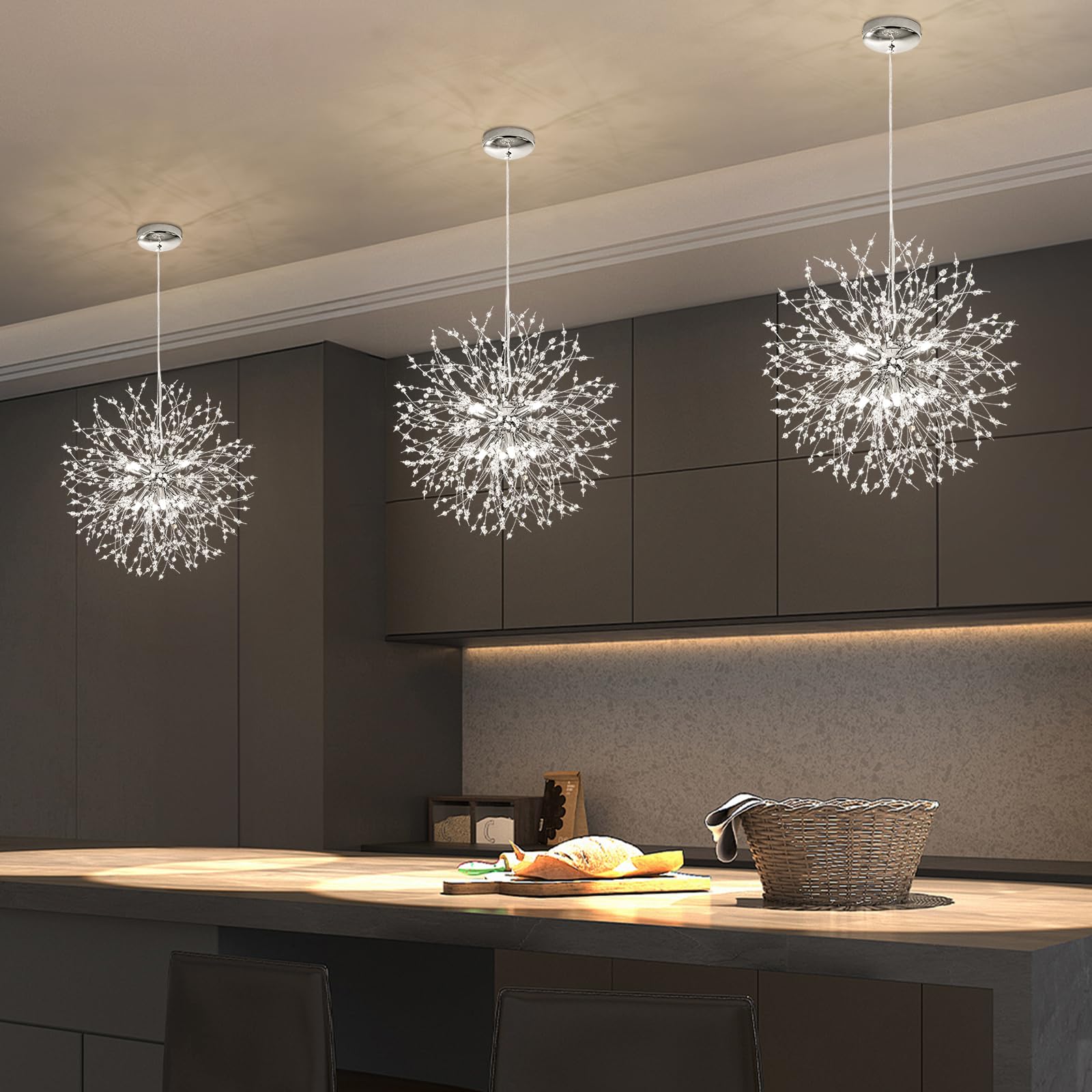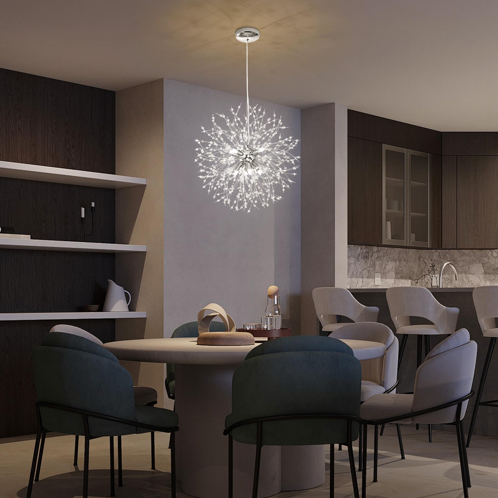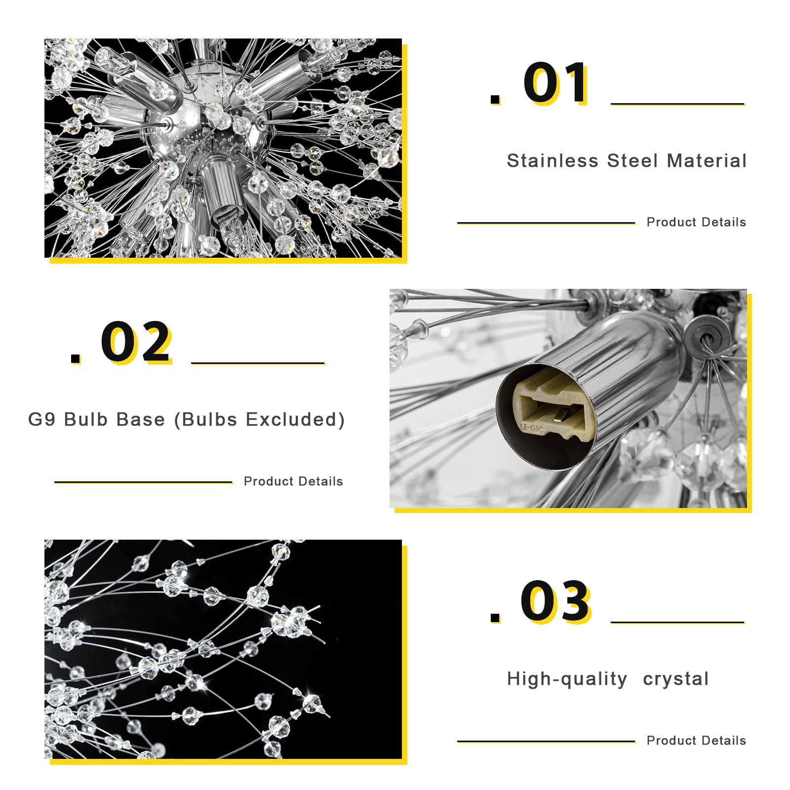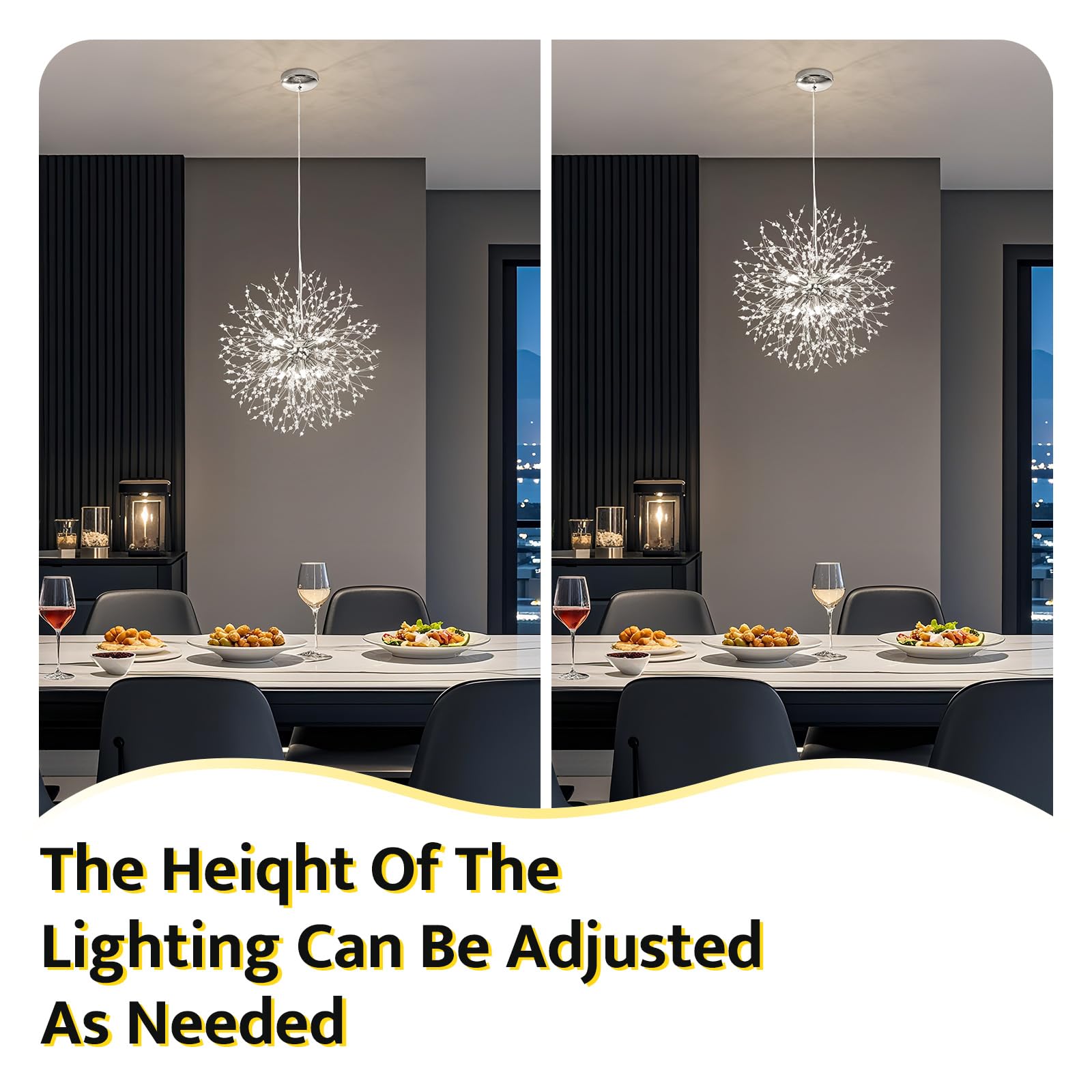 Unique Crystal Design :The diamond starry design of these chandeliers is truly mesmerizing. The quiet stars emit a bright light, resembling a glowing dandelion and firework. The nano-cutting crystal beads add an extra touch of elegance, scattering sunlight into beautiful rainbows. When the light hits the crystal beads, they create hundreds of rainbow prisms in the air