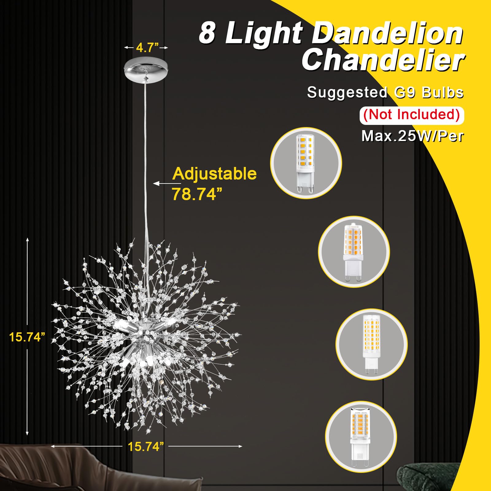 Only Compatible with G9 BULBS: These chandeliers are compatible with G9/110-120 V bulbs (Bulbs NOT included). They can also be dimmed when used with a dimmable bulb and compatible dimmer switch (Not included). This allows you to create the perfect lighting atmosphere for any occasion