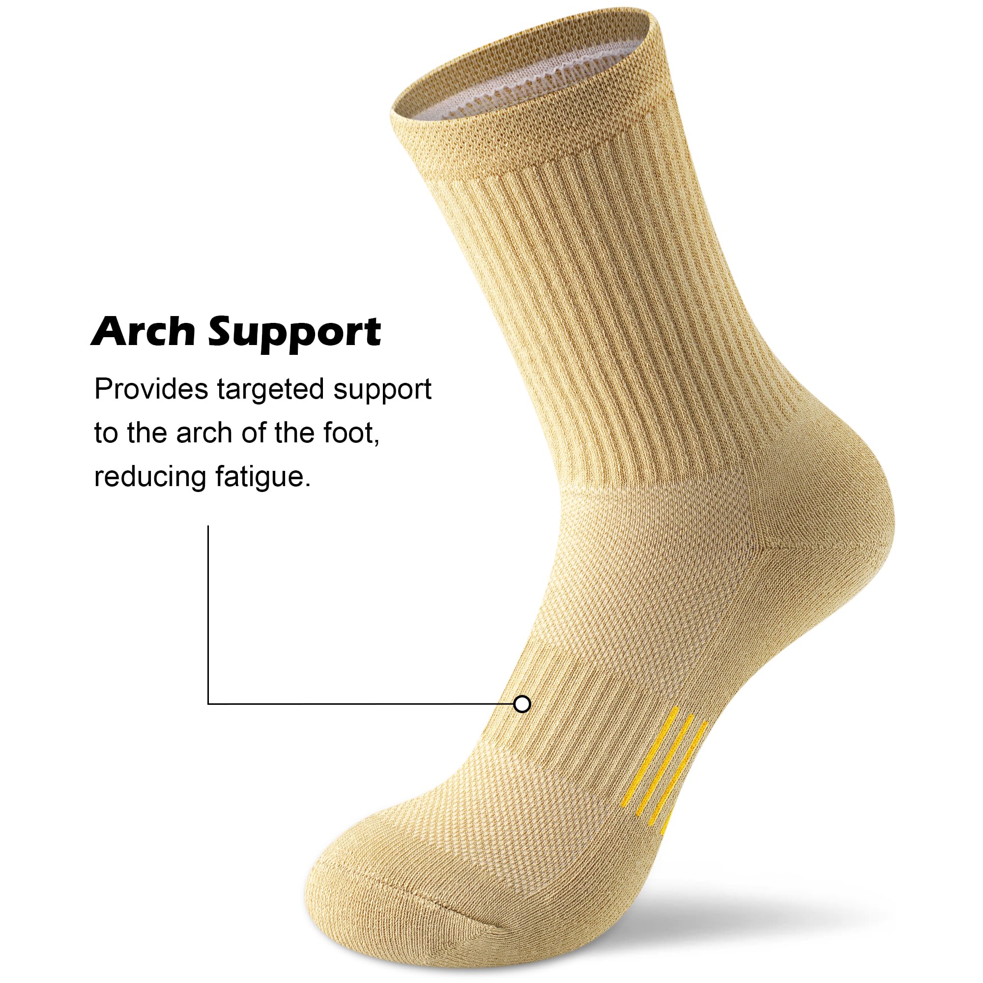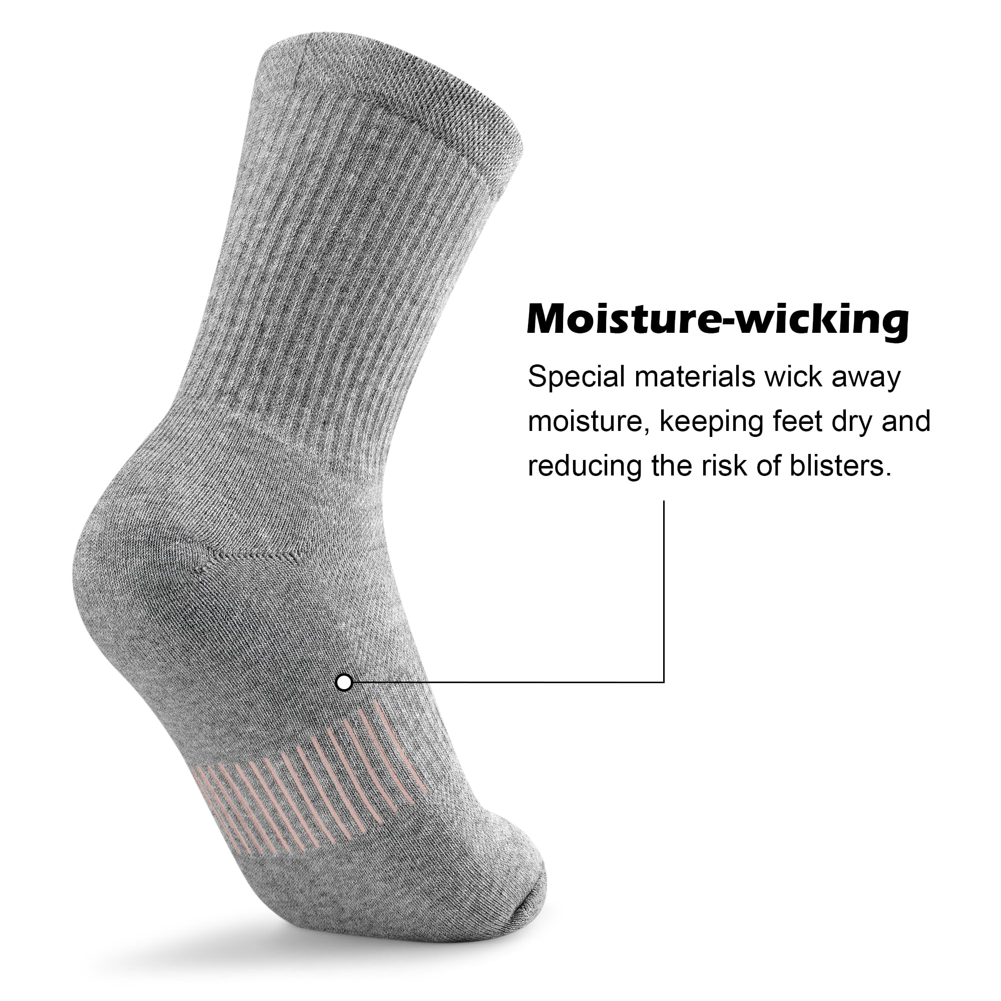 High Performance Comfortable Athletic Socks: The cushioned socks are made of breathable material with premium cotton, cushioned foot, Smooth Toe Seam. Cushioned on the sock heels are heightened to prevent heel abrasion from long-time walking.More softness and comfort with thickened design, could reduce foot friction and relieve foot fatigue