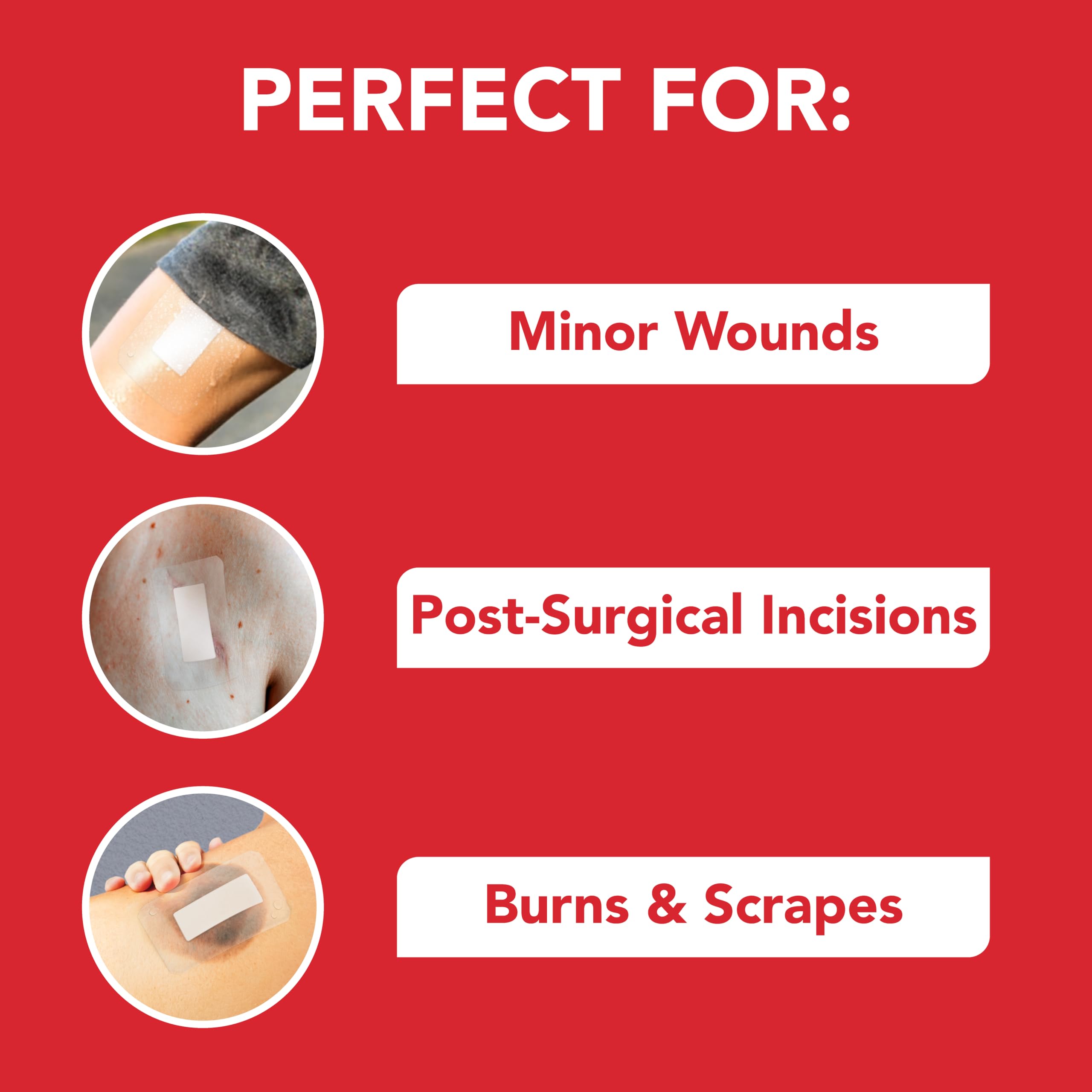 PROTECTION. For protecting minor abrasions, cuts, burns, blisters, scrapes & post-surgical incisions
